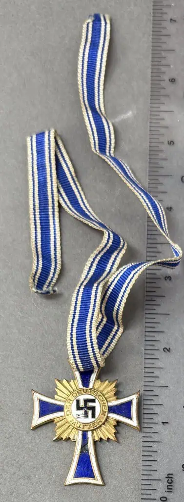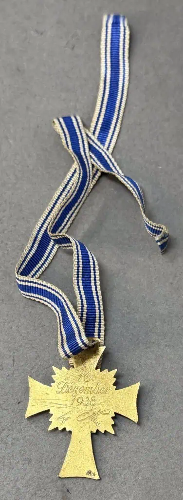 Original WWII Era German Mother’s Cross Ehrenkreuz der Deutschen Mutter In Gold Certified