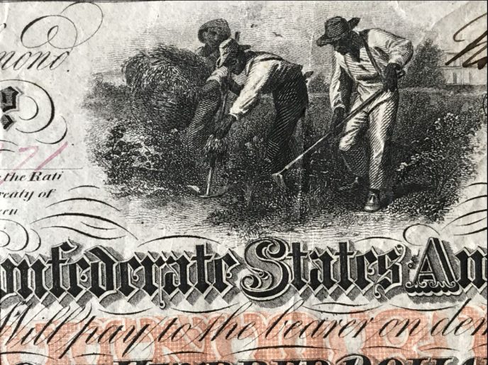 Authentic Civil War Confederate Money, $100.00 “Slave” Note Certified By The Gettysburg Museum Of History Authentic Civil War Confederate Money. (Used during the Civil War circulated but excellent (see photos) The 100.00 slave note is one of the more desirable notes, generally the higher the denomination the less that were made making the 100.00 note more rare. It features slaves working in the fields dated 1862. 100% guaranteed to be authentic Civil War Confederate paper money. Authenticated by The Gettysburg Museum Of History. Comes in a rigid plastic sleeve (removable) Museum documentation (COA) provided. Please see our other Confederate Notes. Also note when browsing our web site there are several pages of items, at the bottom of the list look for other page numbers.