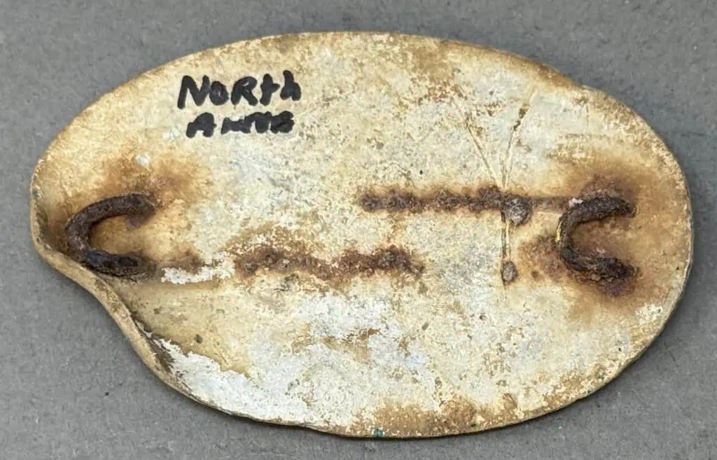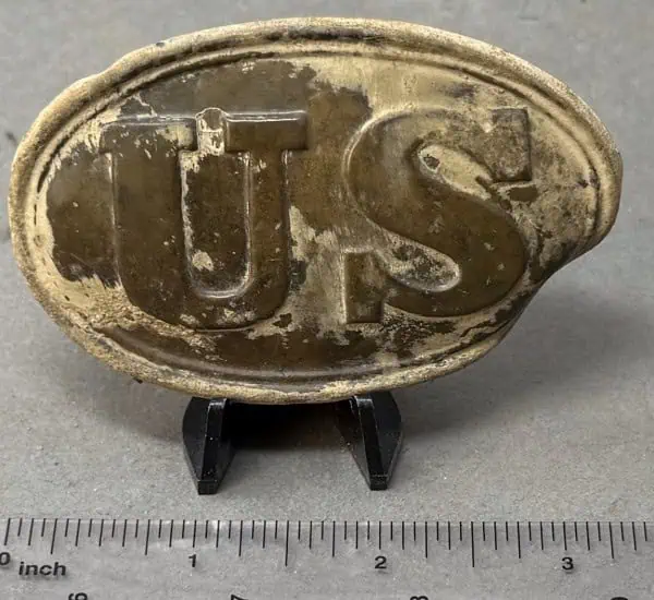 Authentic Civil War Excavated Struck Relic U.S. Box Plate Recovered on The North Anna battlefield in Virginia. North Anna is between Fredericksburg and Richmond and was a hotbed of Combat action part of Grant’s Overland campaign. A great dug plate For the collector who wants an authentic battlefield ground dug relic. A very nice chocolate brown patina. A solid plate from a very historical battlefield. This is an older recovered U.S. box plate. It looks like it might have been struck by something A very historic recovery location and a very nice looking plate. Recovered Pre-National Park and is 100% Legal and 100% authentic. The hooks are broken and it looks great! in good relic condition. This is one of the better early pick-up plates from an old collection. US box plates this nice are very difficult to find and only come from old collections. Battlefield recovered plates with recovery history are getting very hard to find. 100% guaranteed to be authentic Gettysburg Museum certified, museum COA provided. Also note when browsing our web site there are several pages of items, at the bottom of the list look for other page numbers. Scarce! A nice struck US box plate. DO NOT MISS THIS!