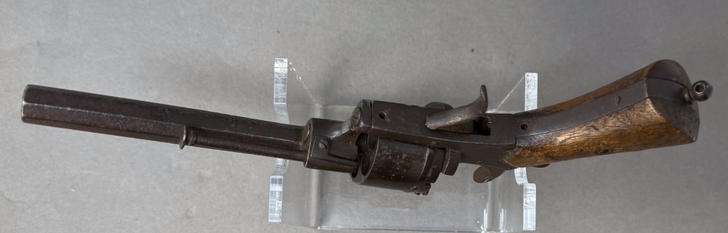 Civil War Period ANTIQUE Model 1858 Lefaucheux Pin Fire 6 Shot Revolver Certified. about .32 Caliber steel frame Antique Pistol Certified. In Non Working condition Civil War period . There is no numbers so it is impossible to accurately date this one. It is a standard version with wood grips and steel frame. it does not work and does not fire and cock. the grips are slightly worn but nice. Many European weapons were exported to the US for sale before and during the Civil War. A classic Civil War period pistol and A choice functioning display gun. A favorite of both Confederate and Union soldiers during the Civil War. Many Civil War soldiers carried private purchase “back up” weapons as illustrated in the photos. This gun is 100% guaranteed to be authentic, loading lever is intact. A fantastic non functioning display piece. Complete museum documentation (COA) provided. This is a pre-1898 antique gun so no federal registration is required. Although this is a non working gun we do not recommend firing antique guns. If you decide to repair it and shoot it, we will not be held liable for any results. You are responsible for knowing your local laws. No sales to New Jersey, New York City, D.C., or outside the United States. No Paypal payments on guns. Also note when browsing our web site there are several pages of items, at the bottom of the list look for other page numbers. Very Nice Looking ANTIQUE Non-Functioning Example! Don’t miss it!