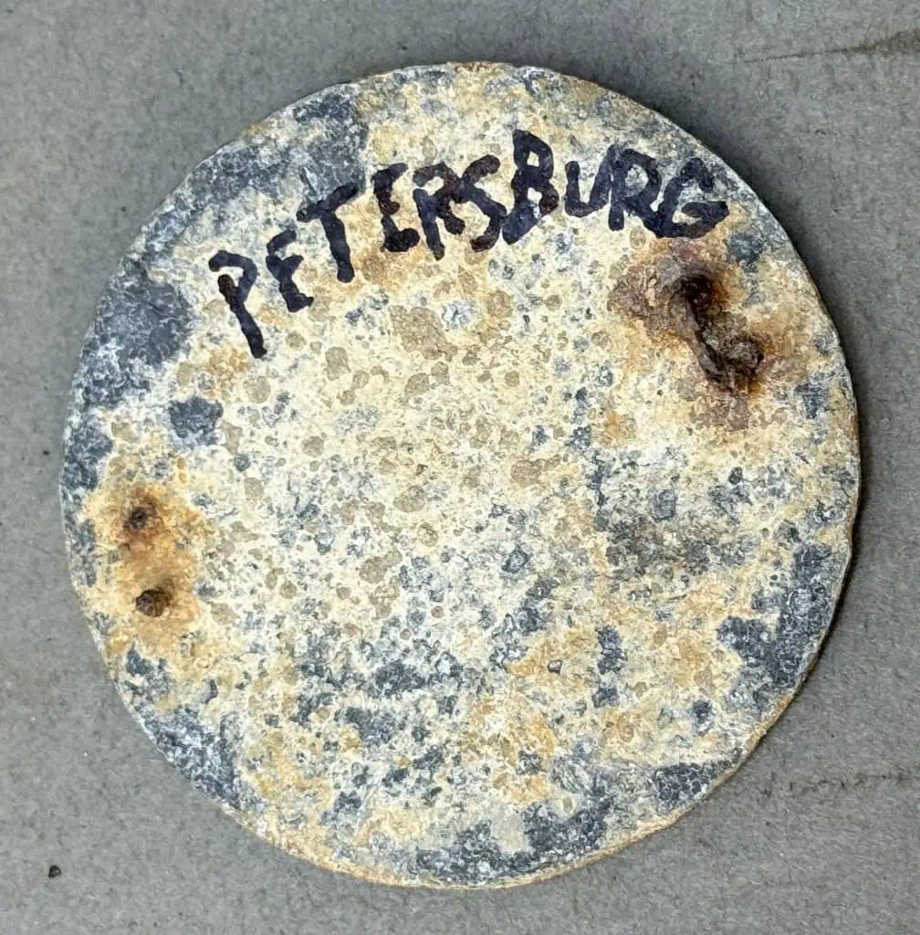 Authentic Civil War Excavated Relic U.S. Eagle Breast Plate Recovered on the Petersburg Battlefield in Virginia. A great dug plate For the collector who wants an authentic battlefield ground dug relic. A very nice chocolate brown patina. A solid plate from a very historical battlefield. This is an older recovered breast plate. A very historic recovery location and a very nice looking plate. Recovered at the The Fort Davis area in Petersburg, Recovered Pre-National Park and is 100% Legal and 100% authentic. One of the hooks is broken but it looks great, in excellent relic condition. This is one of the better early pick-up box plates from an old collection. plates this nice are very difficult to find and only come from old collections. Battlefield recovered plates with recovery history are getting very hard to find. 100% guaranteed to be authentic Gettysburg Museum certified, museum COA provided. Also note when browsing our web site there are several pages of items, at the bottom of the list look for other page numbers. Scarce! An outstanding Eagle plate at a reasonable price. Great History DON’T MISS THIS ONE!