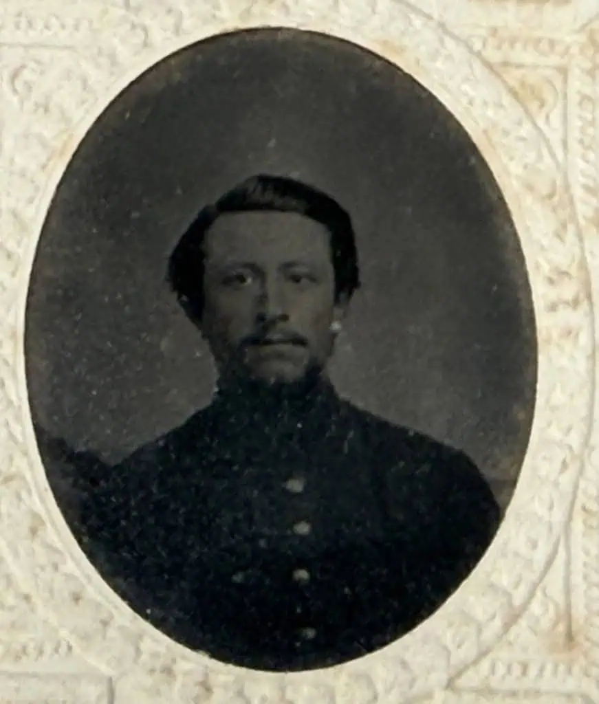 Original Civil War I.D.ed Tin Type Photograph Of A Union Infantry Soldier With Frock Coat Certified