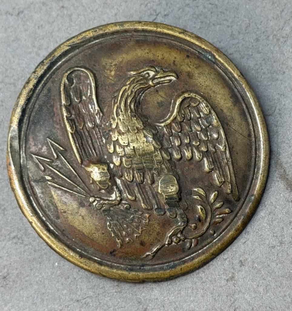 Original Non-Excavated Civil War Union Eagle Breast Plate Certified By The Gettysburg Museum Of History. A stamped brass lead filled model eagle breast plate. This plate has a nice brassy patina, looks fantastic! This plate would have most likely come home with a solider and it is NOT excavated from a battle (NOT dug from the ground). 100% authentic. Both of the two hooks are intact, and it looks great, in excellent used condition (see photos). Plates like this are almost impossible to find and only come from old collections. 100% guaranteed to be authentic Gettysburg Museum certified, museum COA provided. Also note when browsing our web site there are several pages of items, at the bottom of the list look for other page numbers. Scarce in this condition. Don’t miss this one! If you want a really nice one with a great combat used look, this is the one! Un-Cleaned the way we like them!