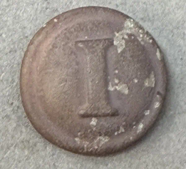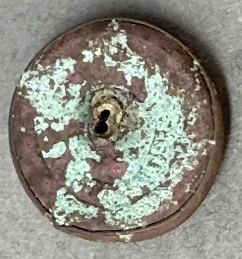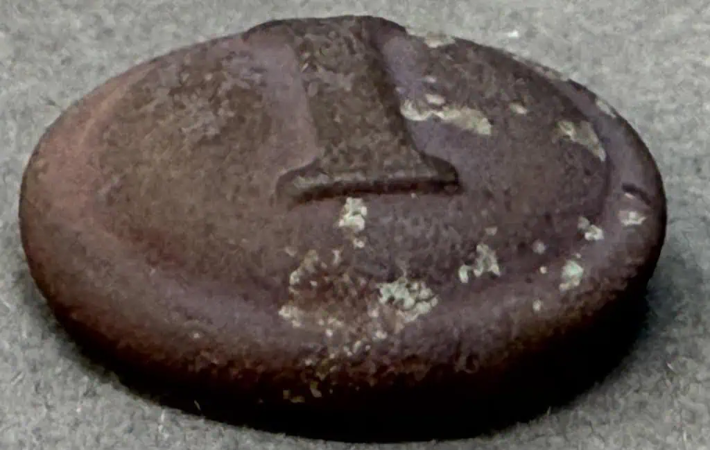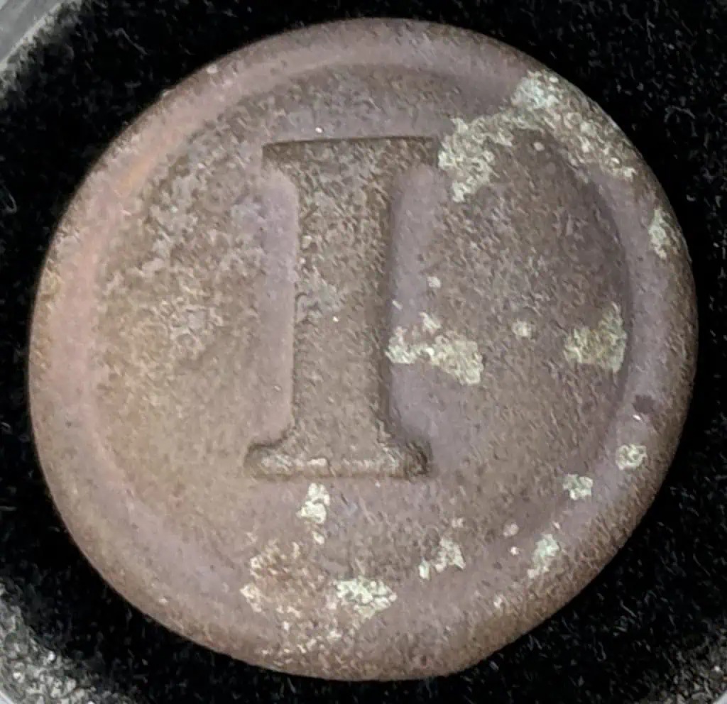 Original Confederate Block I (Infantry) Coat Size Button Recovered At Spotsylvania Certified. A very nice earlier dug relic from the Spotsylvania battlefield recovered on what was then private property. It is very solid and has a rare back The shank is gone. An excellent Confederate Infantry Button. An amazing condition button for A dug example. A fantastic button excavated years ago on the historic Spotsylvania battlefield on what was then private property. A very nice button from a very historic battlefield. 100% guaranteed to be authentic Gettysburg Museum certified, museum COA provided. Don’t miss this!