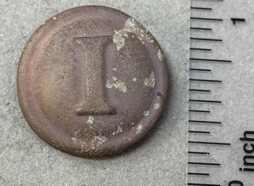 Original Confederate Block I (Infantry) Coat Size Button Recovered At Spotsylvania Certified