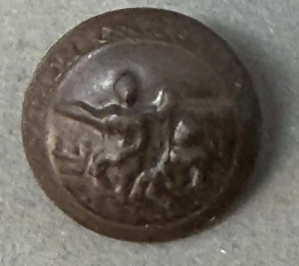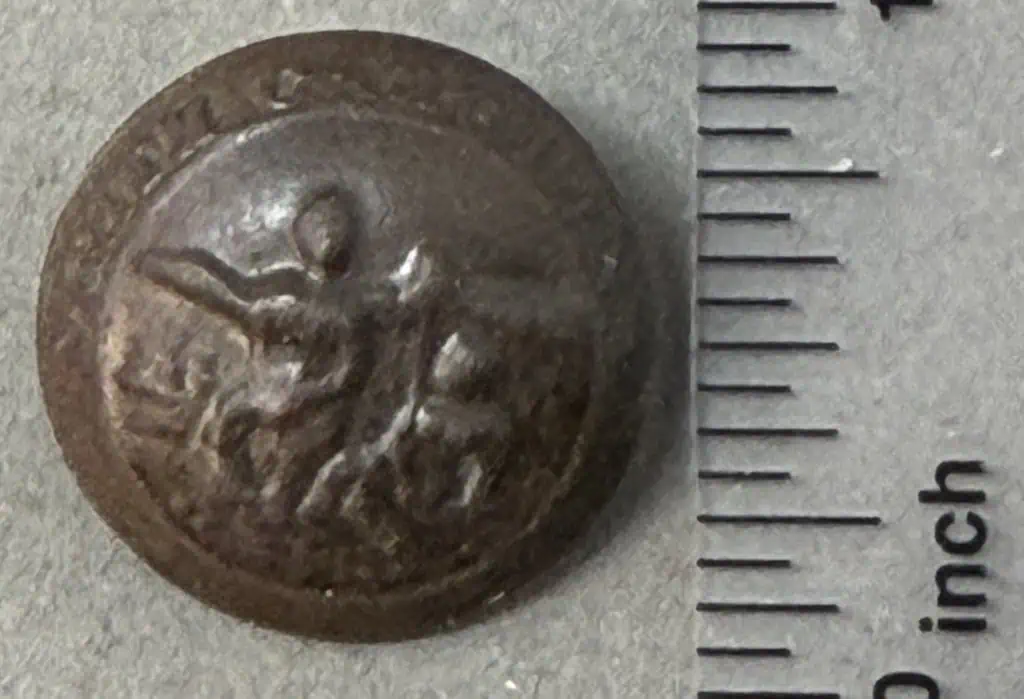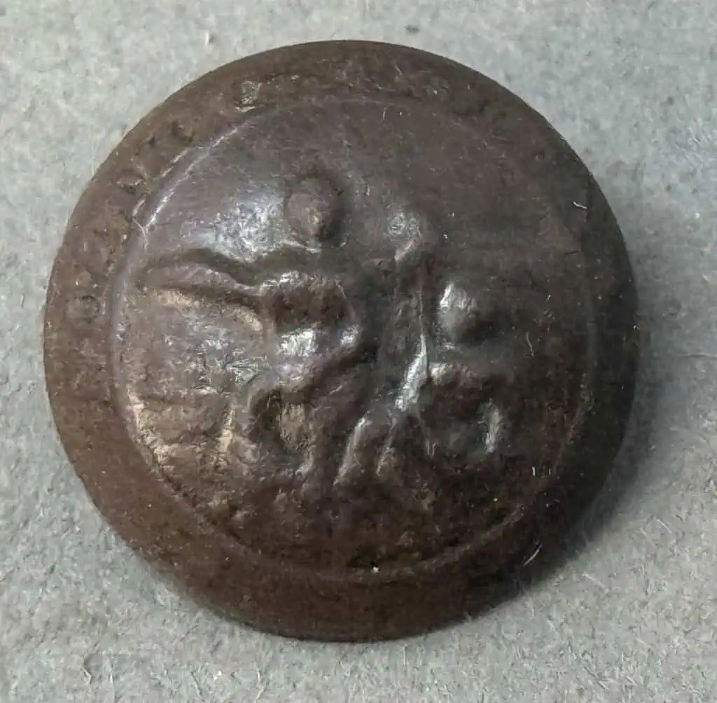 Original Confederate North Carolina Coat Size Button Recovered At Bowling Green, Virginia Certified