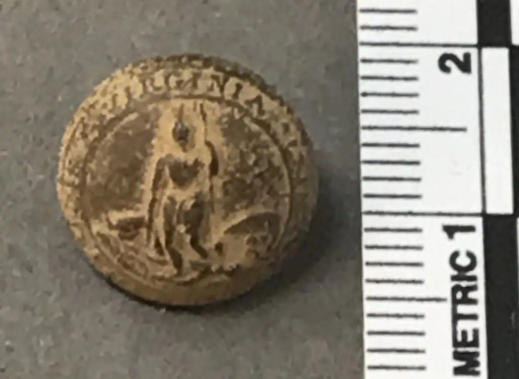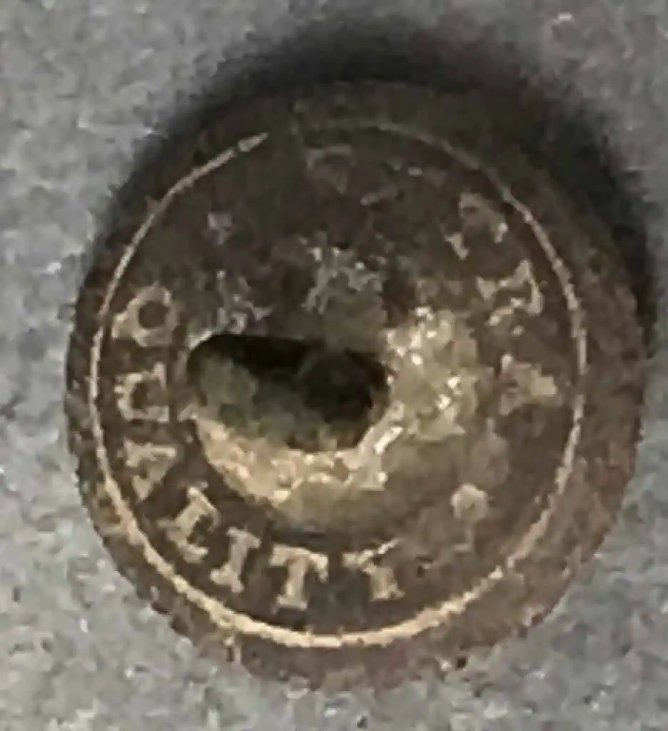 Original Confederate Virginia Cuff Size Button With Backmark Recovered At Fredericksburg, Virginia Certified
