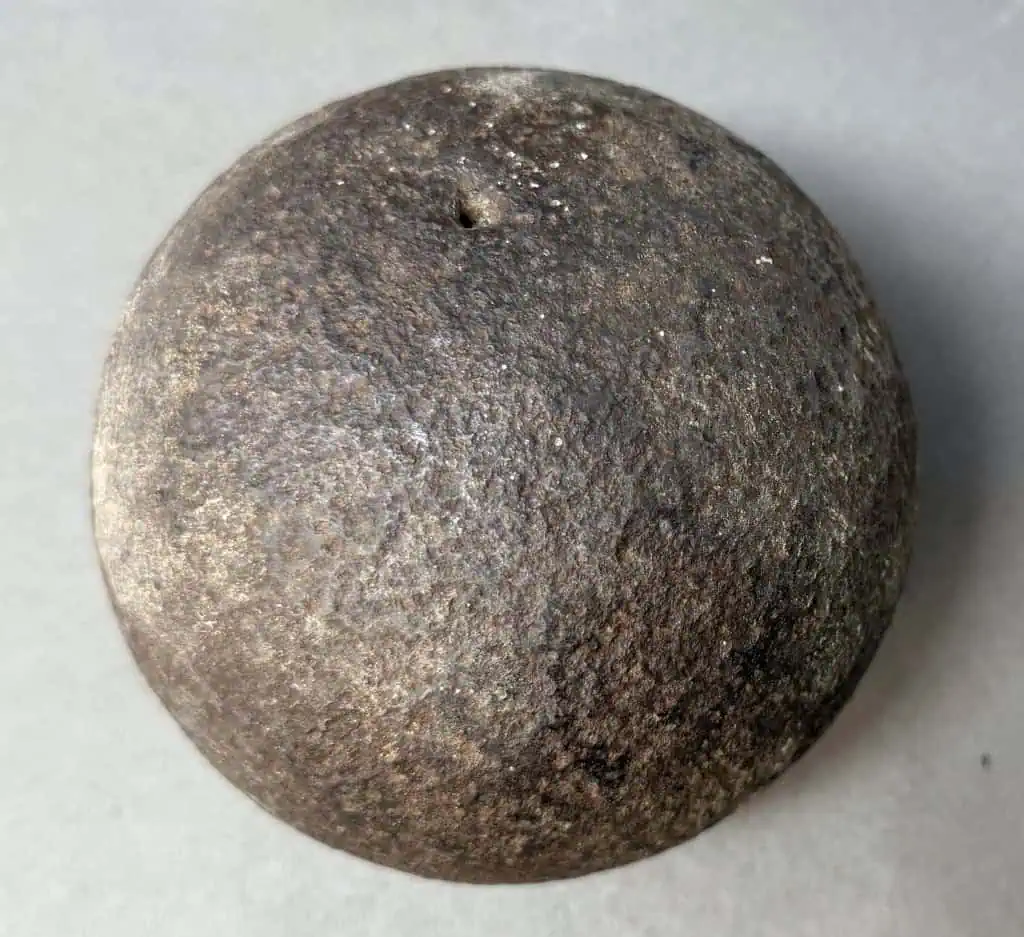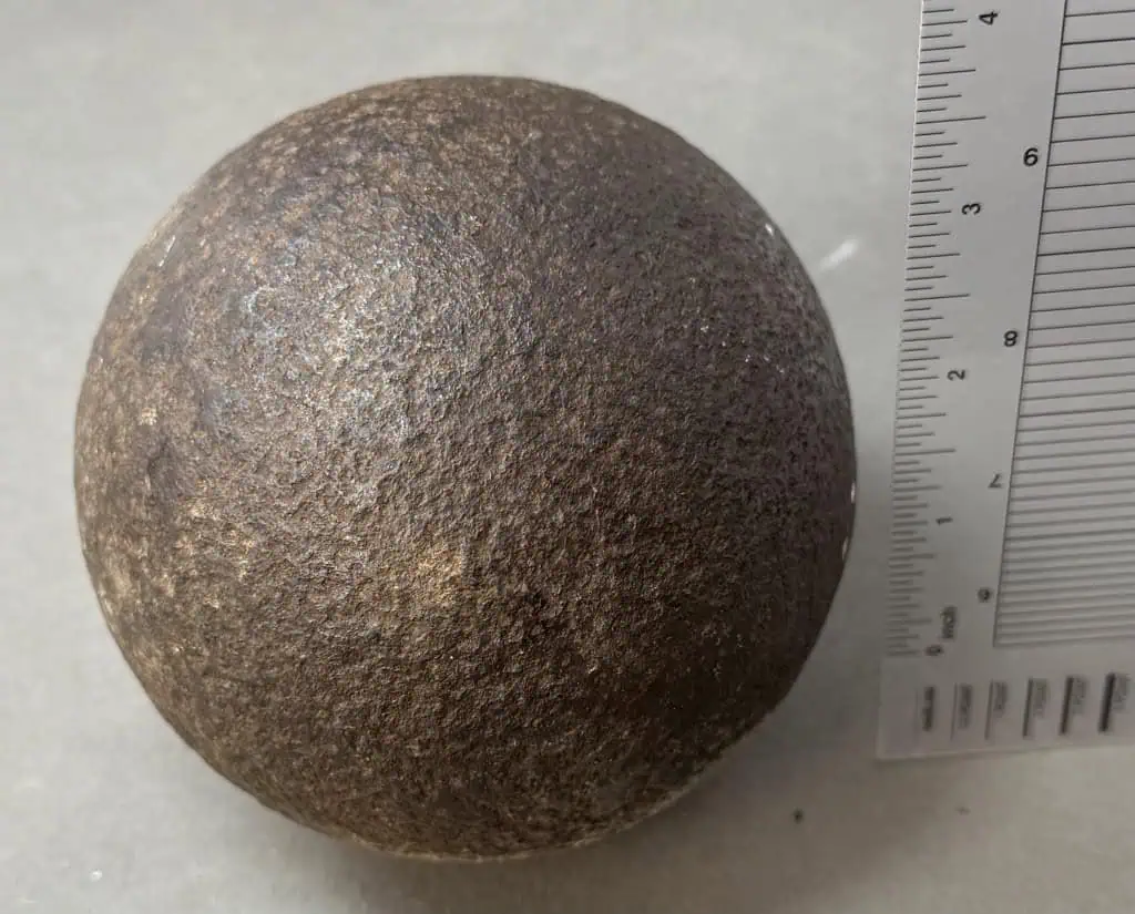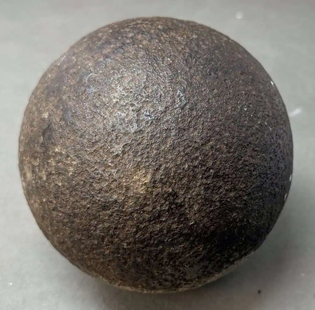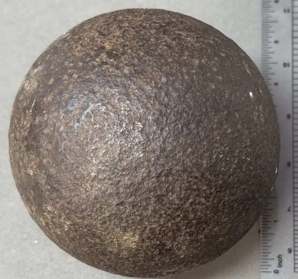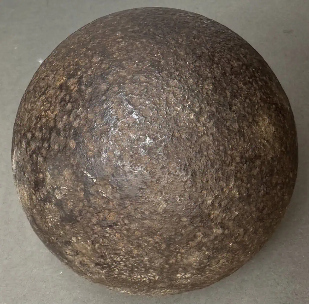 Original Large 12lb. Civil War Cannon Ball, The Classic Civil War Cannon Ball Recovered At Cedar Creek Certified By The Gettysburg Museum Of History. A very nice Civil War relic 12lb cannon ball, this is the classic solid shot Civil War cannon ball. These have no powder and is completely safe (non-explosive). A very early pick-up with light pitting a very nice-looking cannon ball. Recovered Pre-National Park (Recovered at The Cedar Creek Battlefield, Virginia) and is 100% Legal and 100% authentic., in very good relic condition. Very clean for a relic!  Cannon balls this nice are very difficult to find and only come from old collections. 100% guaranteed to be authentic Gettysburg Museum certified, museum COA provided. Also note when browsing our web site there are several pages of items, at the bottom of the list look for other page numbers. Scarce! Don’t miss this. OUTSTANDING CLEAN EXAMPLE One small pin size pitting hole otherwise very outstanding condition!