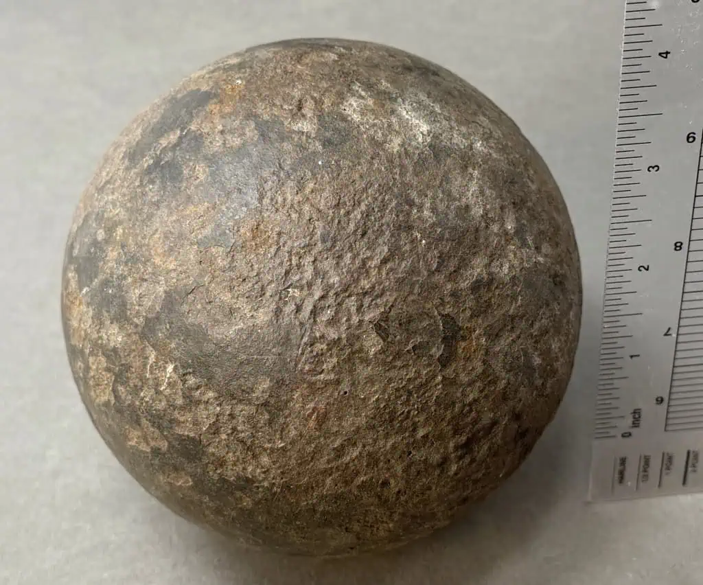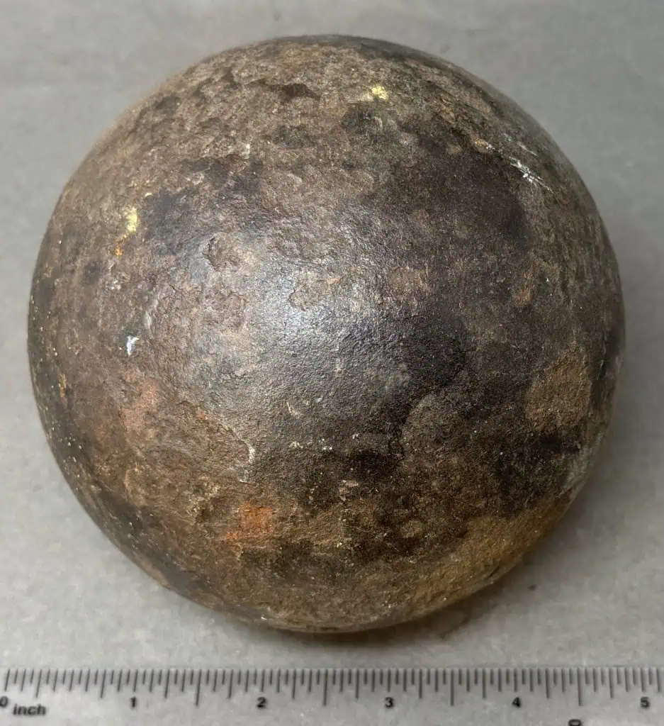Original Large 12lb. Civil War Cannon Ball, The Classic Civil War Cannon Ball Certified By The Gettysburg Museum Of History. A very nice Civil War relic 12lb cannon ball, this is the classic solid shot Civil War cannon ball. These have no powder and is completely safe (non-explosive). A very early pick-up with no pitting a very nice-looking cannon ball. Recovered Pre-National Park (Recovered at The Wilderness Battlefield, Virginia) and is 100% Legal and 100% authentic., in very good relic condition. Very clean for a relic! Cannon balls this nice are very difficult to find and only come from old collections. 100% guaranteed to be authentic Gettysburg Museum certified, museum COA provided. Also note when browsing our web site there are several pages of items, at the bottom of the list look for other page numbers. Scarce! Don’t miss this. OUTSTANDING CLEAN EXAMPLE!