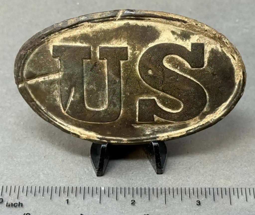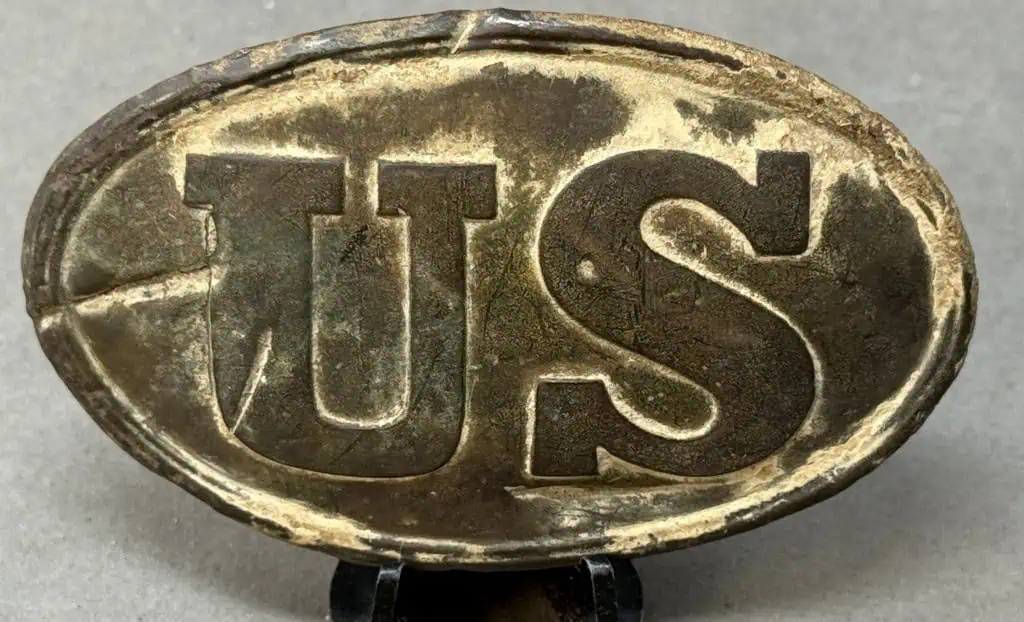 OUTSTANDING Original Civil War Excavated Relic U.S. Belt Plate (Buckle) With Leather Remnant Recovered At Cold Harbor Certified