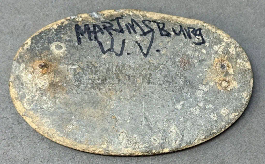 Authentic Civil War Excavated Relic U.S. Box Plate Recovered in Martinsburg West Virginia. A great dug plate For the collector who wants an authentic battlefield ground dug relic. A very nice light brown patina. A solid plate from a very historical battlefield. This is an older recovered plate. A very historic recovery location and a very nice looking plate. Recovered what was then off National Park property and is 100% Legal and 100% authentic. Both of the two hooks is broken and it’s face looks great, in excellent relic condition. This is one of the better early pick-up box plates from an old collection. US plates this nice are very difficult to find and only come from old collections. Battlefield recovered plates with recovery history are getting very hard to find. 100% guaranteed to be authentic Gettysburg Museum certified, museum COA provided. Also note when browsing our web site there are several pages of items, at the bottom of the list look for other page numbers. Scarce location! Don’t miss this. Excellent scarce location!