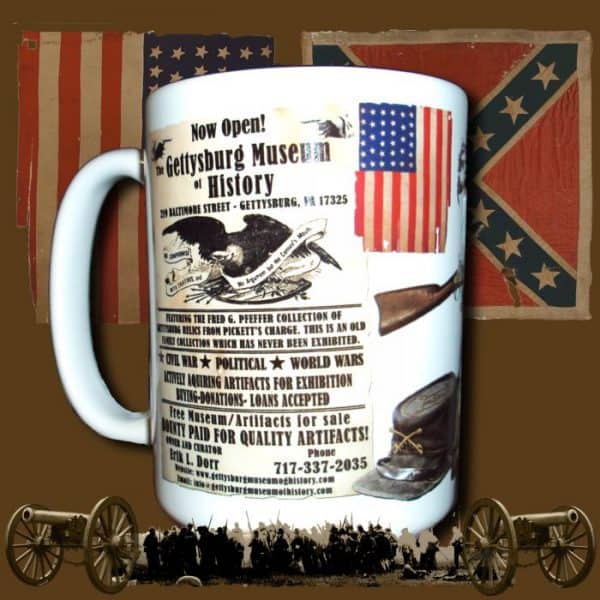 SOLD OUT! Large 15oz Gettysburg Museum Of History Poster Mug! Made in the USA! Beautiful Graphics depicting civil war artifacts!