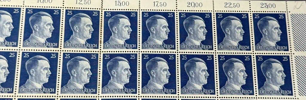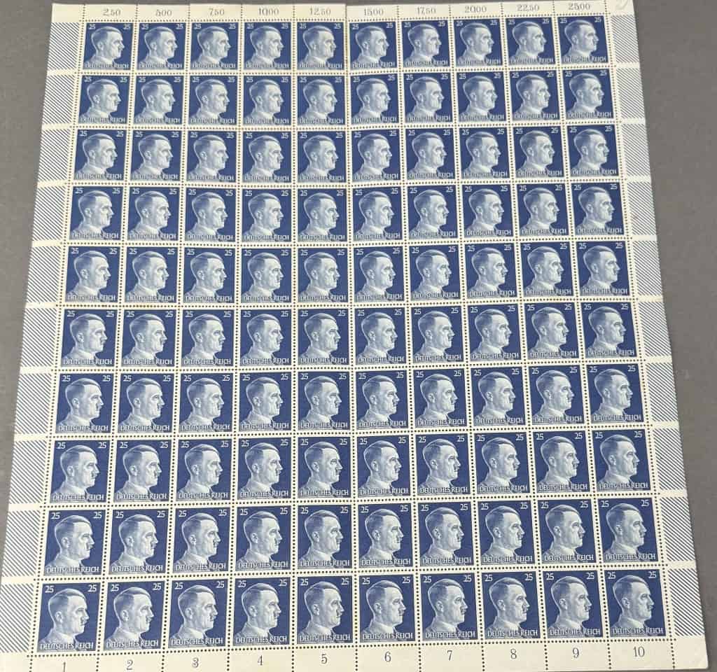A Very Nice Un-Cut Complete Sheet 100 German Third Reich Era Stamps Adolf Hitler (Hitler Heads) Certified