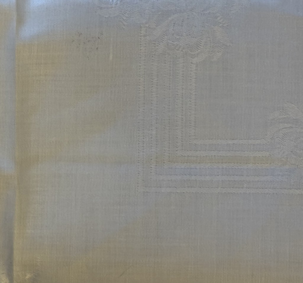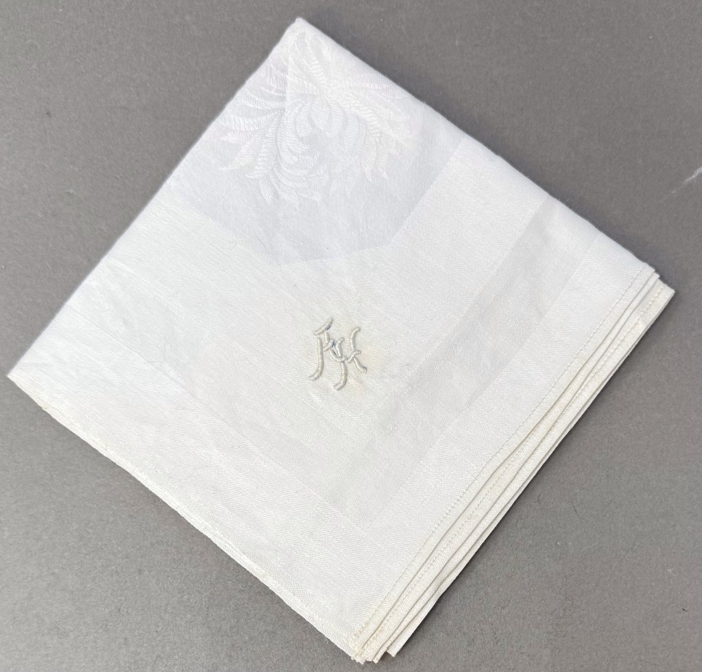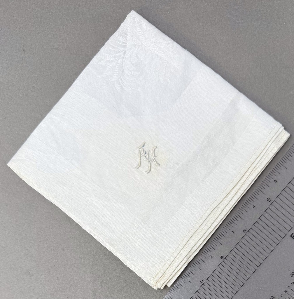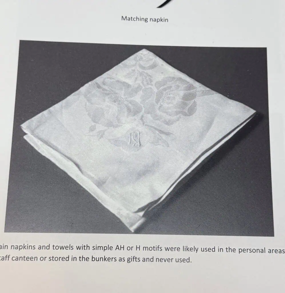 Adolf Hitler’s Personal Fancy Script Pattern Cloth Napkin “Liberated” From The Berghof By A U.S. Solider Featured In Book Certified By The Gettysburg Museum Of History
