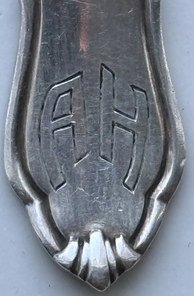 A silver spoon with Adolf Hitler’s personal “AH” monogram “Berghof” pattern. Used for informal lunches and dinners at The Berghof. This is the pattern was only found at the Berghof. This piece has all the proper hallmarks (see photos) made of .800 silver. Nice 6″ piece! Excellent condition except for a few small scratches like all silver does (see photos). 100% guaranteed to be authentic complete museum documentation (COA) provided. Offering for one Hitler piece as pictured. Ex Dr. Mark Griffith Collection who wrote 2 books on Hitler silver. An amazing historical artifact from the 20th century’s most infamous person. Hitler items always sell very fast when we get them. Don’t miss your chance to own a real museum authenticated Hitler piece with museum provenance. The Berghof pattern is the rarest pattern of all the Hitler silver, and they are getting very difficult for us to find. Hitler personal items are a great investment item, and the prices keep going up and investment potential endless. See our other pieces on our web site. Outstanding great piece! DON’T MISS THIS! HITLER’S SILVER IS ALMOST IMPOSSIBLE TO FIND NOW! GET IT WHILE YOU CAN!