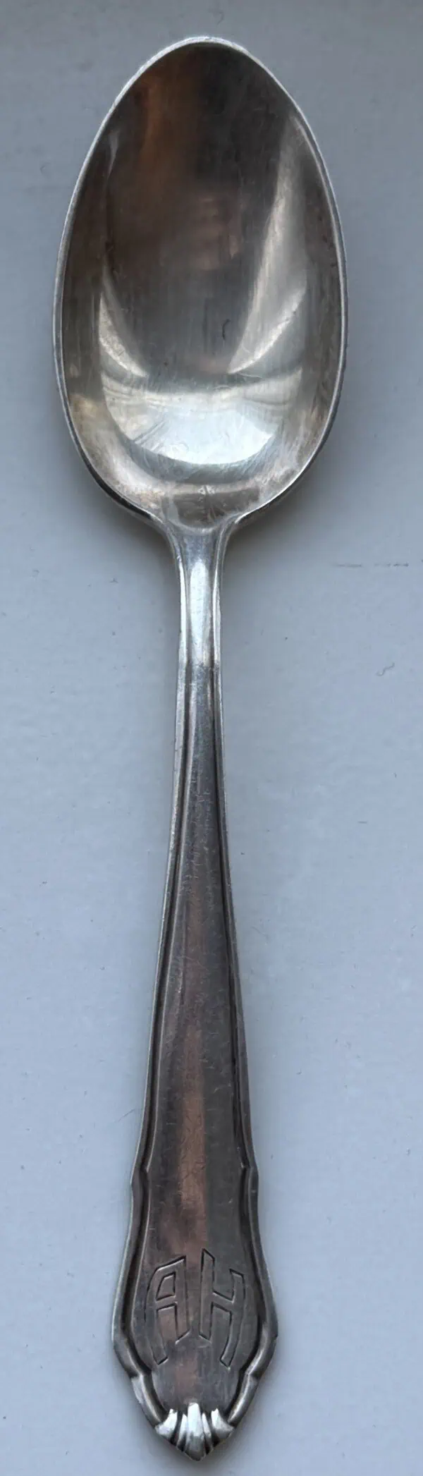 A silver spoon with Adolf Hitler’s personal “AH” monogram “Berghof” pattern. Used for informal lunches and dinners at The Berghof. This is the pattern was only found at the Berghof. This piece has all the proper hallmarks (see photos) made of .800 silver. Nice 6″ piece! Excellent condition except for a few small scratches like all silver does (see photos). 100% guaranteed to be authentic complete museum documentation (COA) provided. Offering for one Hitler piece as pictured. Ex Dr. Mark Griffith Collection who wrote 2 books on Hitler silver. An amazing historical artifact from the 20th century’s most infamous person. Hitler items always sell very fast when we get them. Don’t miss your chance to own a real museum authenticated Hitler piece with museum provenance. The Berghof pattern is the rarest pattern of all the Hitler silver, and they are getting very difficult for us to find. Hitler personal items are a great investment item, and the prices keep going up and investment potential endless. See our other pieces on our web site. Outstanding great piece! DON’T MISS THIS! HITLER’S SILVER IS ALMOST IMPOSSIBLE TO FIND NOW! GET IT WHILE YOU CAN!