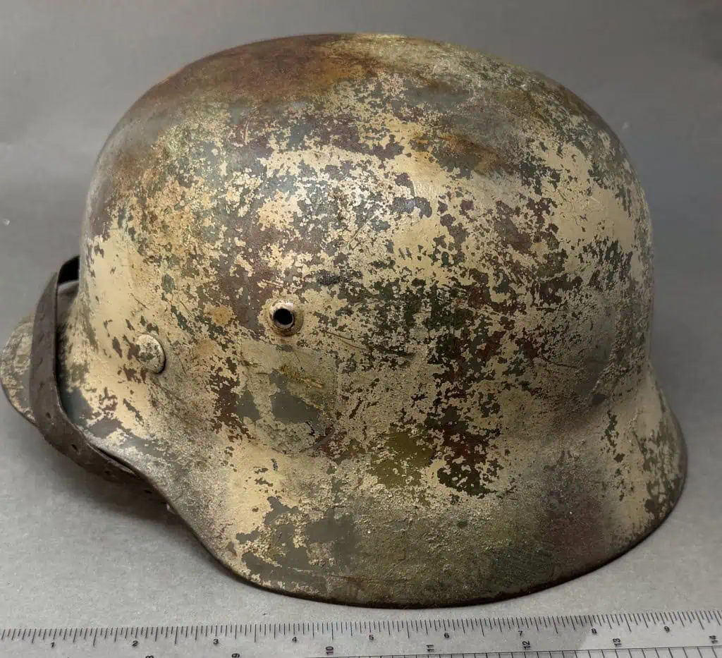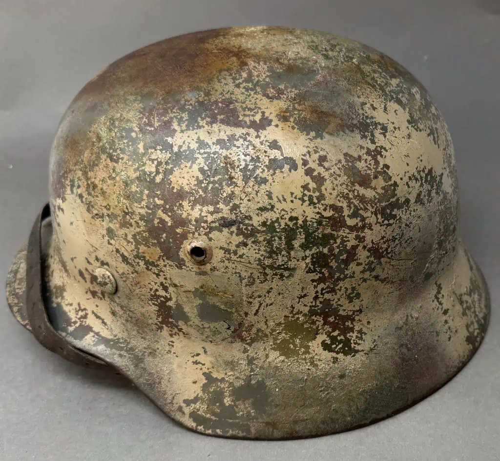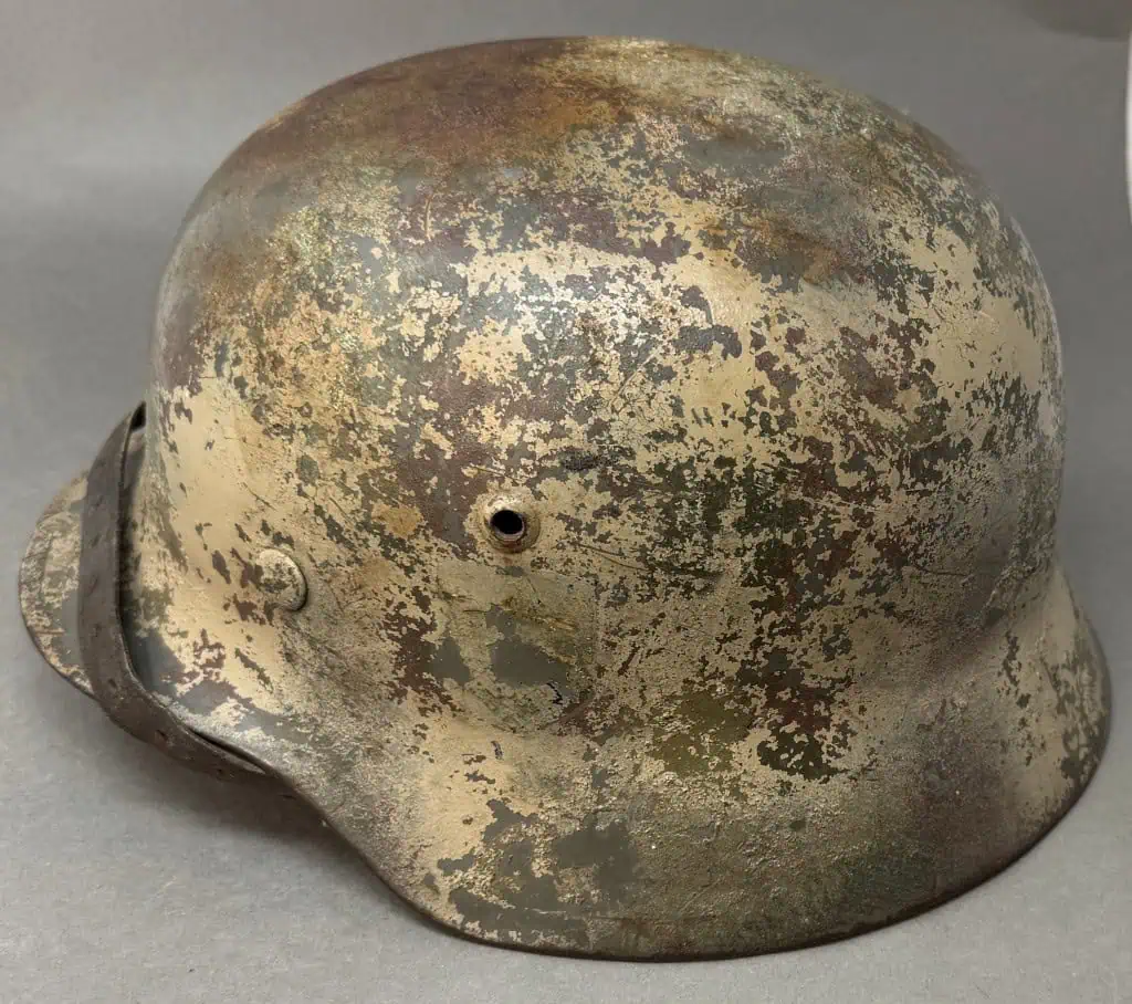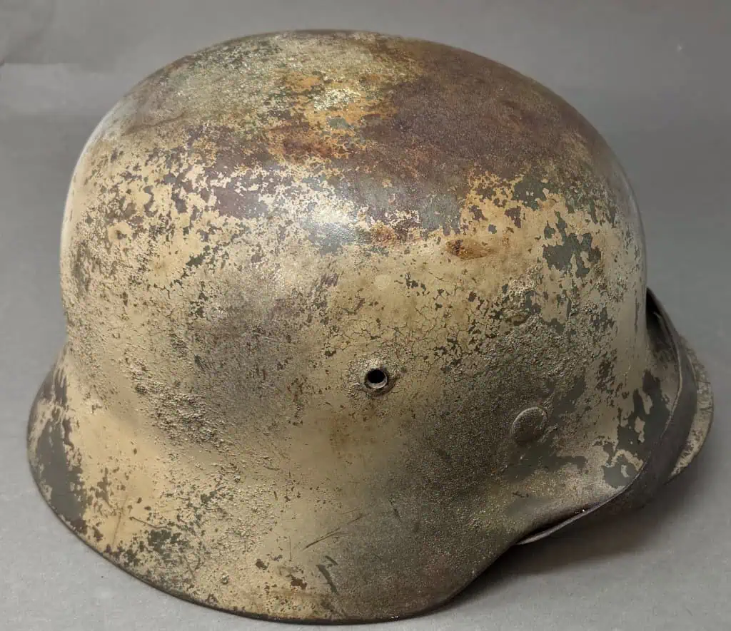 Amazing Original WWII German M-35 “Normandy” Camouflage Ex Single Decal Helmet Brought Home By A U.S. Veteran Certified By The Gettysburg Museum Of History