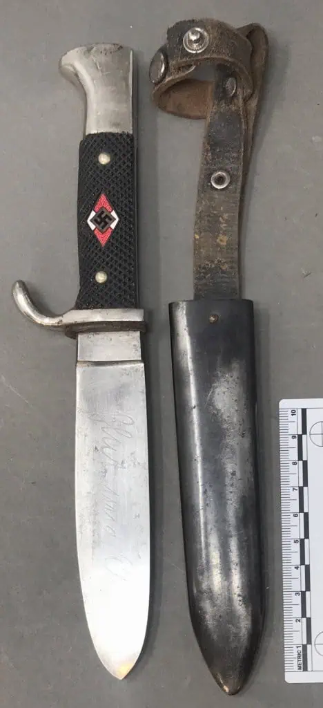 EXCELLENT CONDITION Original WWII German Hitler Youth Knife And Scabbard Brought Home By A U.S. Veteran Certified
