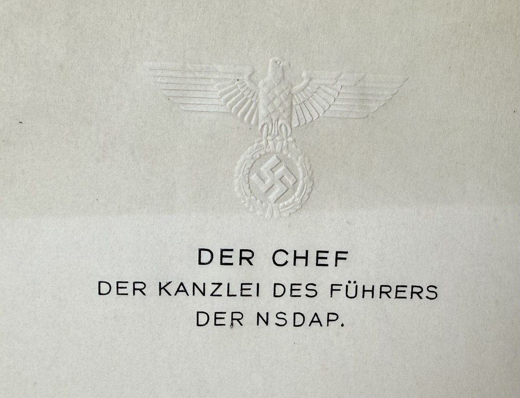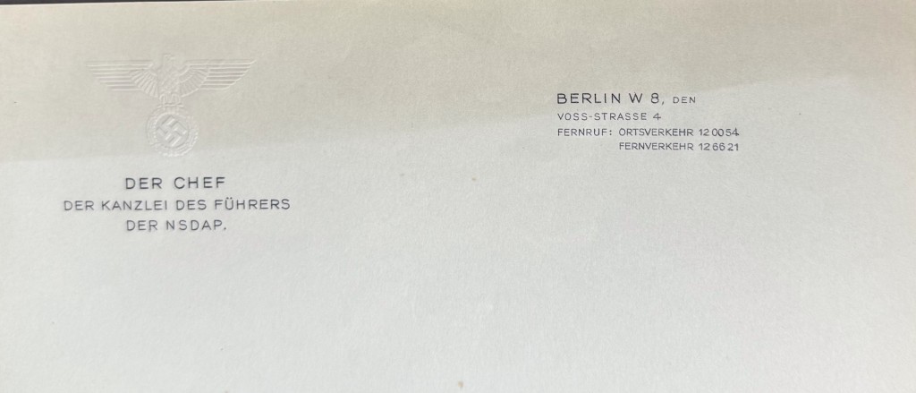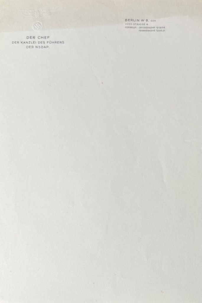 Martin Bormann’s Personally Owned Eagle Embossed Berlin Stationary “Liberated” From The Fuhrerbau In Munich By A U.S. Solider Certified By The Gettysburg Museum Of History