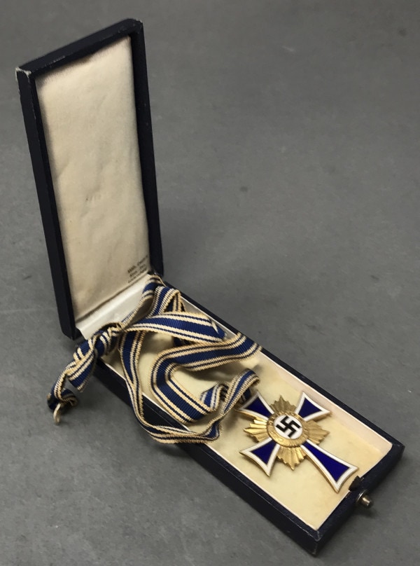 Original Cased WWII Era German Mother’s Cross Ehrenkreuz der Deutschen Mutter In Gold Certified
