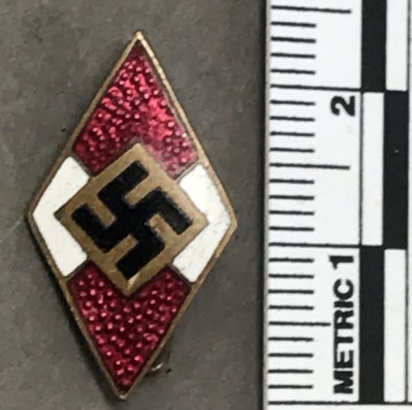 Original Enamel Hitler Youth Membership Badge Brought Home By A U.S. Veteran Certified