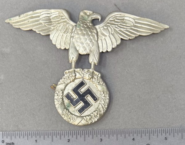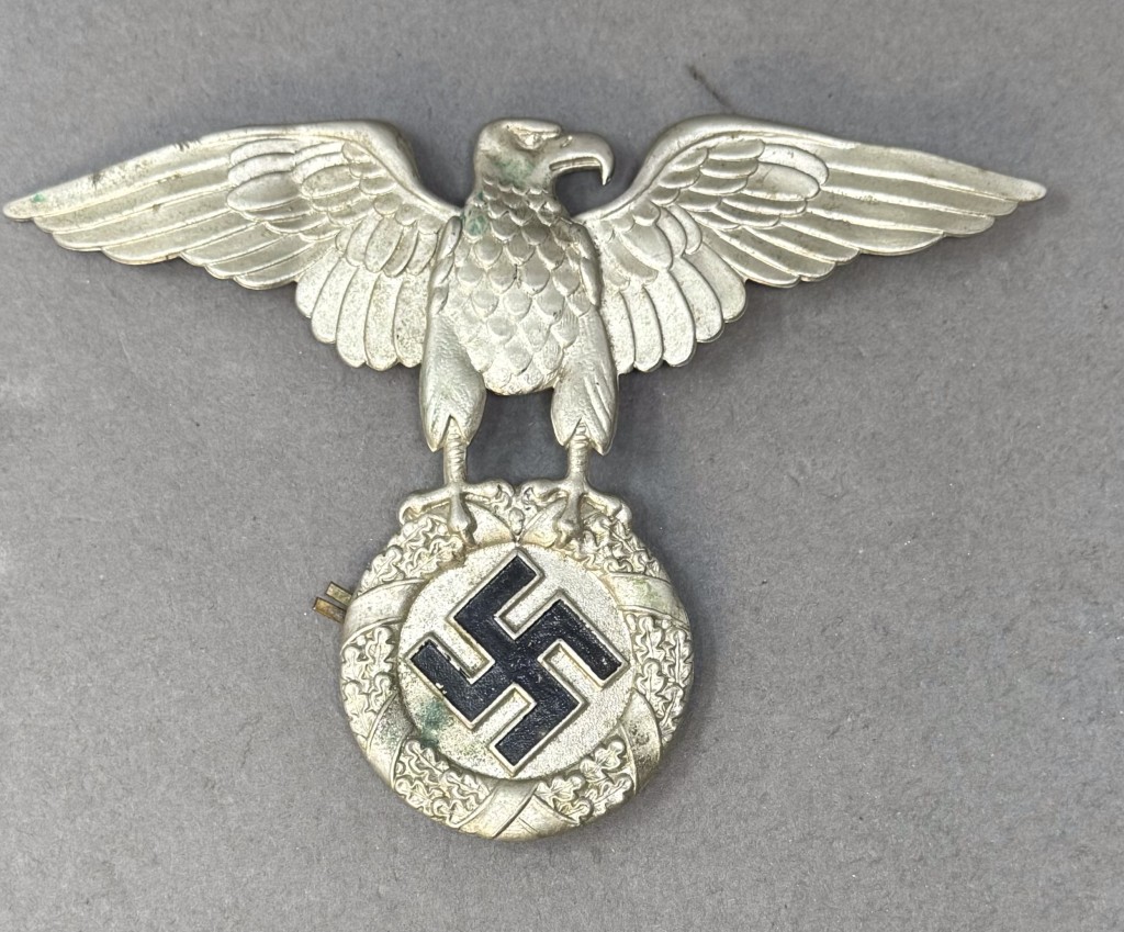 Original German 1ST PATTERN NSKK CRASH HELMET. (Sturzhelm) EAGLE Certified. The development of the NSKK, National Sozialistisches Kraftfahr Korps, (National Socialist Motor Corps), can be traced back to 1923 when the SA introduced a Kraftfahr Abteilung, (Motor Section), to transport personnel as required. In 1928 the SA Motor section was expanded to Kraftfahrstaffeln, (Motor Squadrons). In an attempt to create a national motor corps the NSAK, National Sozialistisches Automobil Korps, (National Socialist Automobile Corps), was formed in April 1930 as a NSDAP auxiliary organization subordinate to the SA. In early 1931 Adolf Hühnlein was appointed as Chief of the NSAK and proposed a name change to NSKK, which was officially accepted in April 1931. The NSKK was formally formed in April 1931, and adopted the crash helmet that had been worn by the Motor-SA units as early as 1928. The only modification to the helmet was the insignia used.  A 1st pattern NSKK stylized national eagle.  Very nice with pongs intact, RZM marked.   In good but used condition  Gettysburg Museum Certified (COA) provided. Rare 100% Guaranteed to be authentic. Sold for historic purposes only. See our other pieces on our web site.   Also note when browsing our web site there are several pages of items, at the bottom of the list look for other page numbers. Excellent Rare EXAMPLE VERY NICE looking early eagle! BIG!