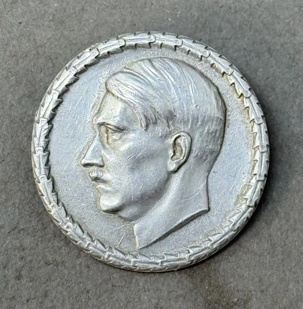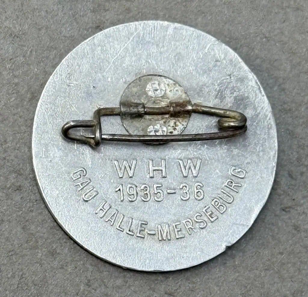 Original German Adolf Hitler   W.H.W. DONATION BADGE. (Winterhilfswerk Abzeichen) Certified. The W.H.W., “Winterhilfswerk” (Winter-help-work), was an annual charitable donation event held by the “N.S.-Volkswohlfahrt” (National Socialist – People’s-welfare) in which personnel from all of the N.S.D.A.P. organizations would solicit donations from the public, and reward contributors with a wide variety of lapel badges. A, 30mm diameter, cast aluminum badge with silver wash whose obverse features a profile portrait of Hitler. A horizontal pin-back device is to its reverse. Nicely maker marked and dated 1935-36 on reverse. Complete museum documentation (COA) Provided. Certified by The Gettysburg Museum of History. 100% guaranteed to be authentic. The Gettysburg Museum of History does not support or condone Adolf Hitler or the Nazi Party and is only offering this as a historic relic. Please see our other items.    Also note when browsing our web site there are several pages of items, at the bottom of the list look for other page. EARY, SCARCE!