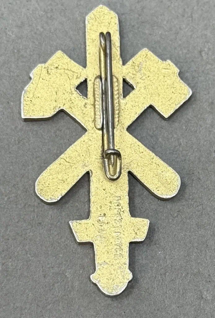 Original German NSDAP (NAZI PARTY) 1925-1935 10-Year NSDAP In Gau Essen Badge By Hoffstätter Of Bonn Certified. A fine quality manufacture 10 Year NSDAP Commemorative Gau Essen badge; in gilded aluminum; vertical pinback; maker marked “Hoffstätter, Bonn” on the reverse; measuring 53 mm x 31 mm; extremely fine condition, with the majority of the original gilt still remaining.  Scarce. Nice example showing the expected minor age and wear overall good condition.  One of the classic desirable early NSDAP collector’s items   from the third Reich in used but in good but used condition. Gettysburg Museum Certified (COA) provided. 100% Guaranteed to be authentic. Sold for historic purposes only. See our other pieces on our web site. Also note when browsing our web site there are several pages of items, at the bottom of the list look for other page numbers. Great badge! don’t miss it! RARE!