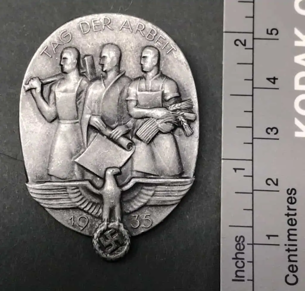 Original German NSDAP (NAZI PARTY) 1935 NATIONAL LABOR DAY COMMEMORATIVE BADGE. (Arbeitstag Abzeichen) Certified.