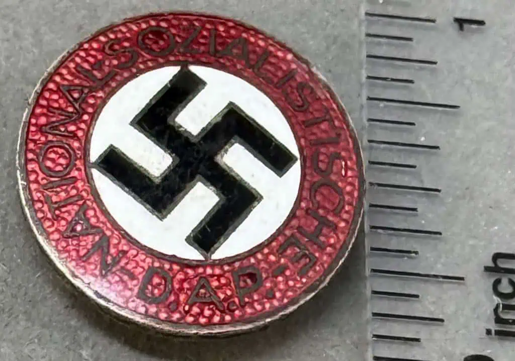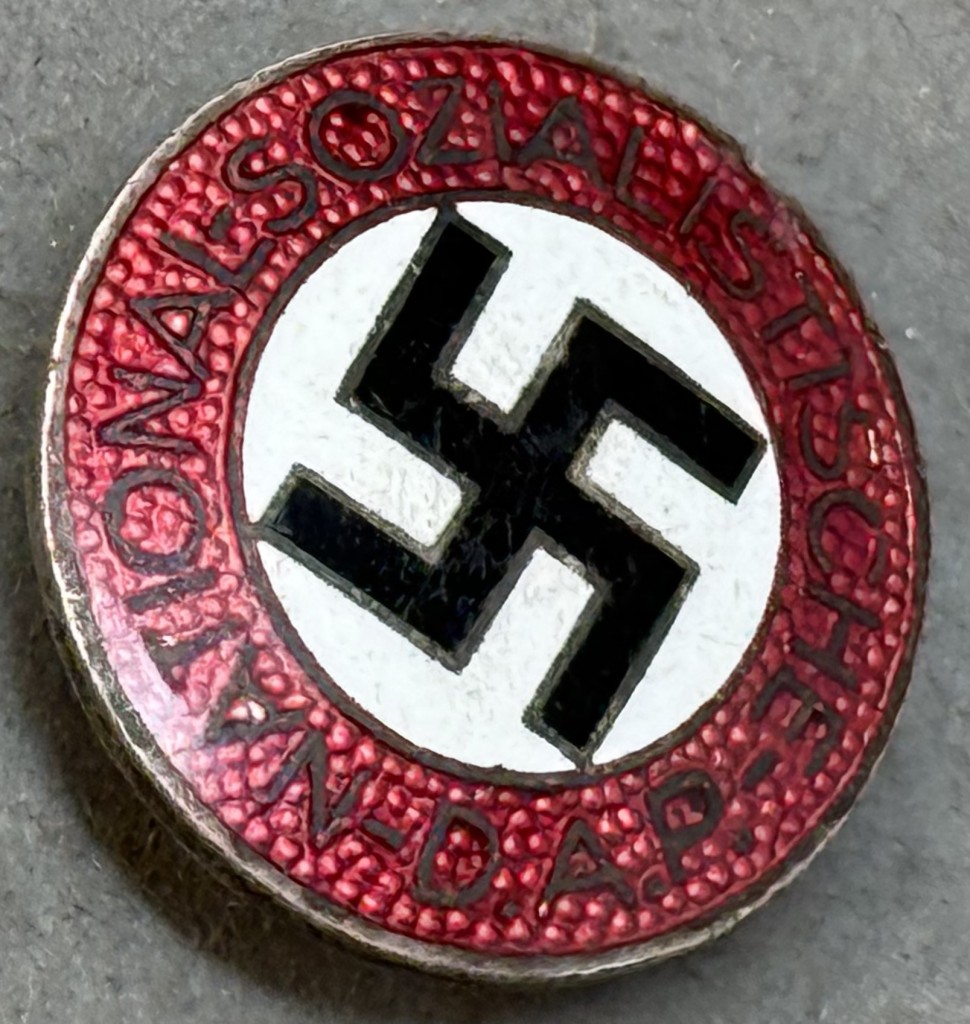 Original German NSDAP (Nazi) Party Enamel Early Membership Badge Certified By The Gettysburg Museum Of History. The NSDAP, Nationalsozialistische Deutsche Arbeiterpartei, (National Socialist German Worker’s Party), was originally founded in Munich as the DAP, Deutsche Arbeiterpartei, (German Worker’s Party), on January 5TH 1919. When Adolf Hitler joined the DAP in the autumn of 1919, he was to reform what was basically a debating society into an active political party. Appointed as the first chairman of the party on July 29TH 1921 Hitler was to restructure it along para-military lines in a hierarchy of four levels of government. Of Note: In late 1934 items manufactured for the NSKK, including membership pins, came under the quality control of the RZM, Reichzeugmeisterei, (National Equipment Quartermaster) and as a result were marked with the RZM logo when appropriate. Standard issue membership badge awarded to all personnel on acceptance as an official party member. 24mm diameter, die struck alloy badge NSDAP membership badge with multi-colored enamel work. Badge features a red, circular outer border with embossed silvered script, “National-Sozialistiche-D.A.P.”, encompassing a white enamel field with canted black enamel swastika. Has a button clasp intact. RZM marked Maker code M1/34 for maker Karl Wurster, Markneukirchen.  In very good but used condition. Nice used example showing the expected but mild storage age and wear (see photos) 100% Guaranteed to be authentic.  Complete museum documentation (COA) Provided. Certified by The Gettysburg Museum of History. The Gettysburg Museum of History does not support or condone Adolf Hitler or the Nazi Party and is only offering this as a historic relic. Please see our other items. Also note when browsing our web site there are several pages of items, at the bottom of the list look for other page numbers. Don’t Miss It! NICE EXAMPLE!