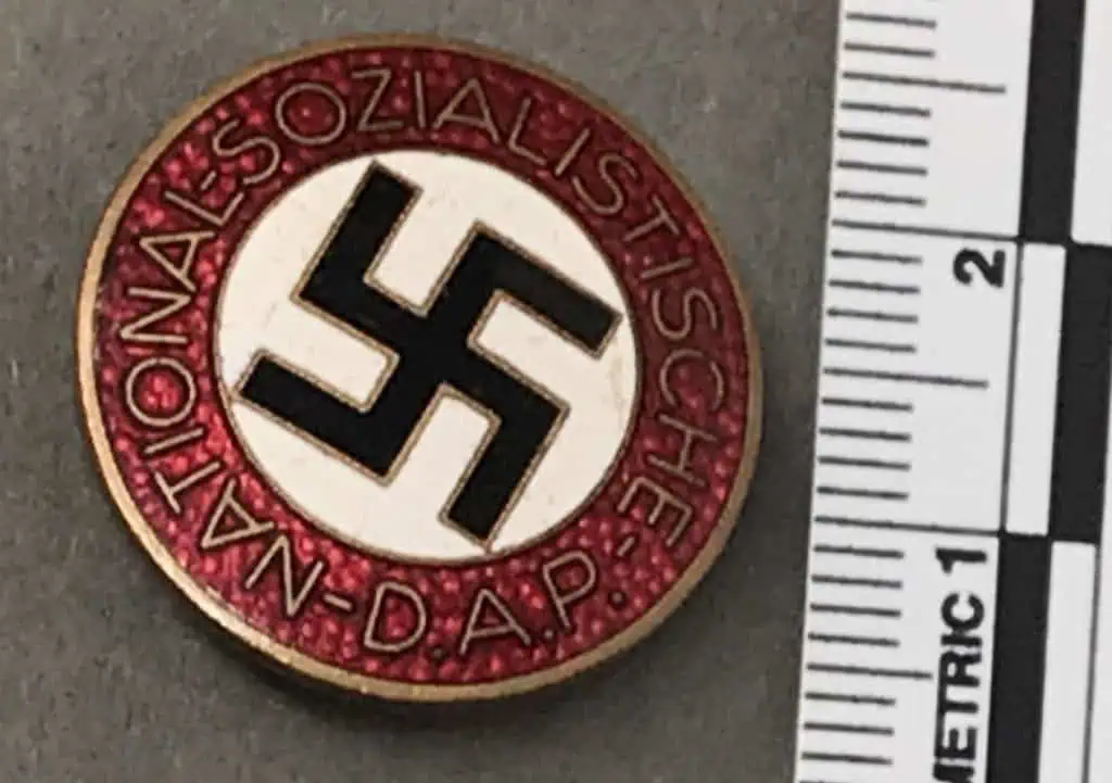 Original German NSDAP (Nazi) Party Enamel RZM Marked Membership Badge Certified By The Gettysburg Museum Of History. The NSDAP, Nationalsozialistische Deutsche Arbeiterpartei, (National Socialist German Worker’s Party), was originally founded in Munich as the DAP, Deutsche Arbeiterpartei, (German Worker’s Party), on January 5TH 1919. When Adolf Hitler joined the DAP in the autumn of 1919, he was to reform what was basically a debating society into an active political party. Appointed as the first chairman of the party on July 29TH 1921 Hitler was to restructure it along para-military lines in a hierarchy of four levels of government. Of Note: In late 1934 items manufactured for the NSKK, including membership pins, came under the quality control of the RZM, Reichzeugmeisterei, (National Equipment Quartermaster) and as a result were marked with the RZM logo when appropriate. Standard issue membership badge awarded to all personnel on acceptance as an official party member. 24mm diameter, die struck alloy badge NSDAP membership badge with multi-colored enamel work. Badge features a red, circular outer border with embossed silvered script, “National-Sozialistiche-D.A.P.”, encompassing a white enamel field with canted black enamel swastika. Has a scarce buttonhole lapel devise. RZM marked with maker code M1/72 for maker Fritz Zimmermann, Stuttgart In very good but used condition. Nice used example showing the expected but mild storage age and wear (see photos)! 100% Guaranteed to be authentic Brought home by a U.S. solider as a trophy of war. Complete museum documentation (COA) Provided. Certified by The Gettysburg Museum of History. The Gettysburg Museum of History does not support or condone Adolf Hitler or the Nazi Party and is only offering this as a historic relic. Please see our other items. Also note when browsing our web site there are several pages of items, at the bottom of the list look for other page numbers. Don’t Miss It!