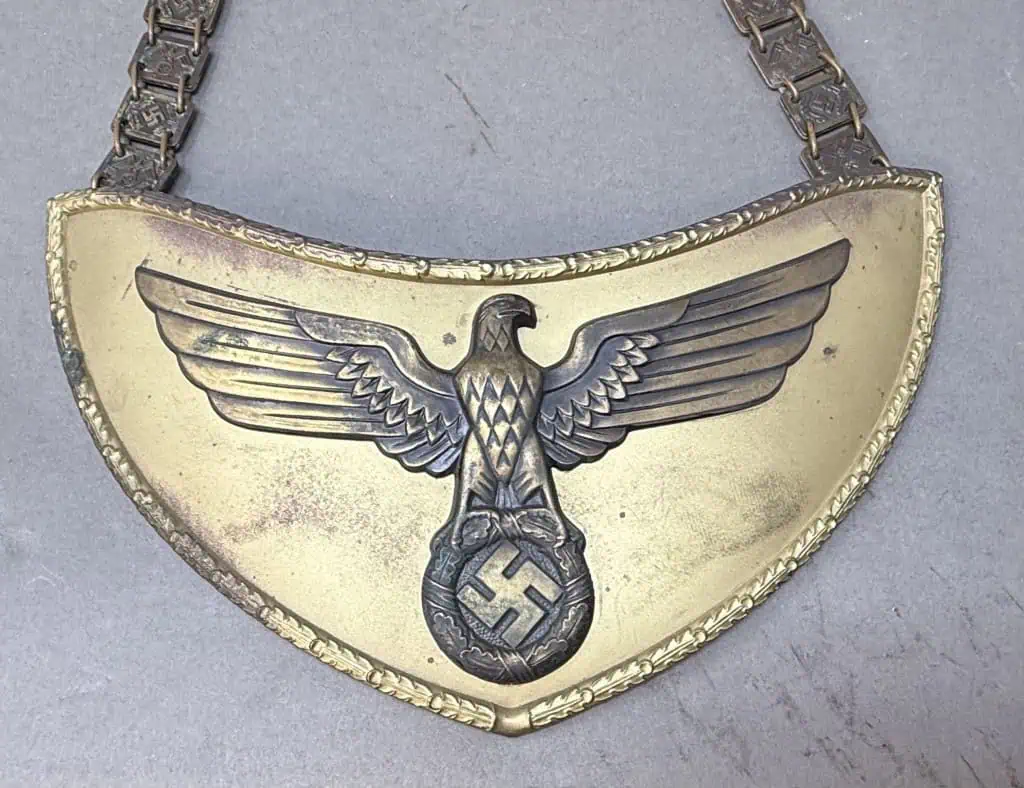 Original GERMAN NSDAP (NAZI PARTY) POLITICAL LEADER FLAG BEARER’S GORGET. (Politisches Leiter Ringkragen) WITH Chain Certified