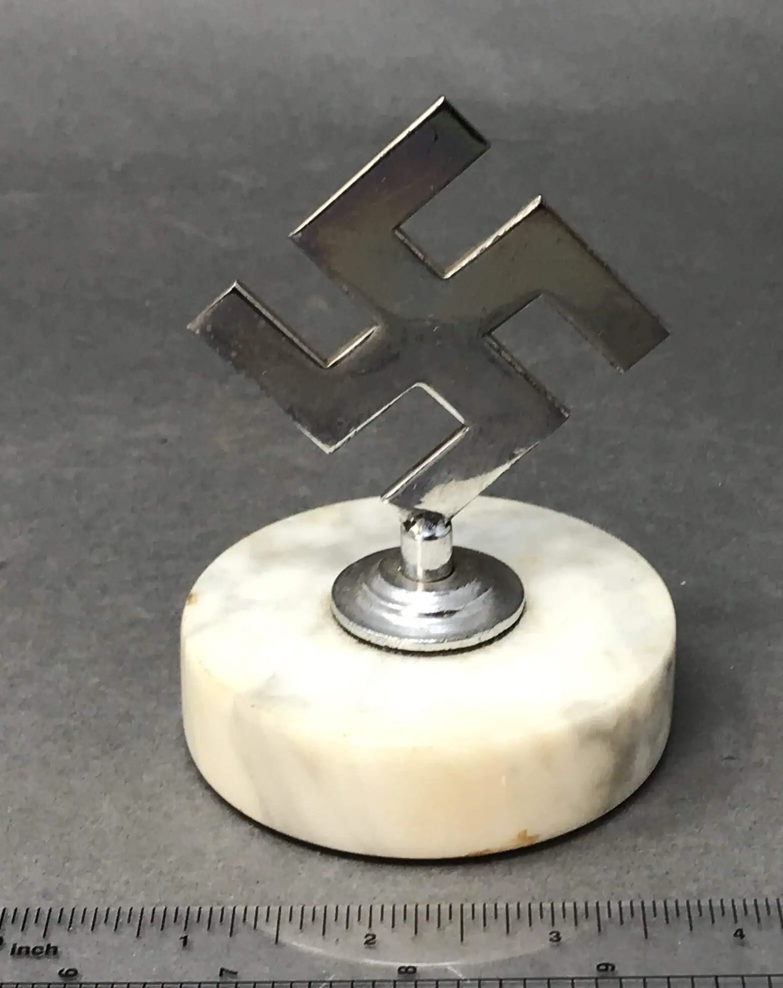 Original German NSDAP (Nazi Party) Political Leader “KREISLEITUNG” LEVEL COMMUNITY LEADER’S COLLAR TAB. (Kragenspiegel) Certified. The NSDAP, “Nationalsozialistische Deutsche Arbeiterpartei” (National-socialist German Workers’-party), was originally founded, in Munich, in January of 1919. Known then as the DAP, “Deutsche Arbeiterpartei” (German Workers’-party), when Adolf Hitler joined it, in the autumn of 1919, he set about reforming what was basically a debating society into an active political party. Appointed as its first chairman in July of 1921, Hitler restructured the party along para-military lines in four ascending levels of government, consisting of the “Ortsgruppe,” the “Kreisleitung,” the “Gauleitung,” and the “Reichsleitung,” with each group being distinguished by a specific color of piping on the collar tabs and visor cap. Uniform regulations for Nazi political leaders were addressed as early as 1920, underwent numerous modifications, and were largely finalized by May of 1939. A “Kreisleitung” (District-leader) collar tab, as indicated by the chocolate brown color of its 70mm tall and 50mm wide velvet parallelogram, as well as by the white piping which surrounds it. It is the fourth pattern, as worn between 1939-45, featuring a gilt-washed alloy national eagle, clutching a wreathed, static swastika in its talons. Four gilt-washed alloy “pips,” each of which have small eagles surmounting static swastikas embossed to their centers. These indicated the rank of a “Gemeinschaftleiter” (Community-leader). Still has the original RZM tag! Nice example showing the expected minor age and wear overall good condition. In Excellent but used condition. Gettysburg Museum Certified (COA) provided. 100% Guaranteed to be authentic. Sold for historic purposes only. See our other pieces on our web site. Also note when browsing our web site there are several pages of items, at the bottom of the list look for other page numbers. RARE artifact! don’t miss it! Excellent CONDITION WITH RZM TAG! . Great example!