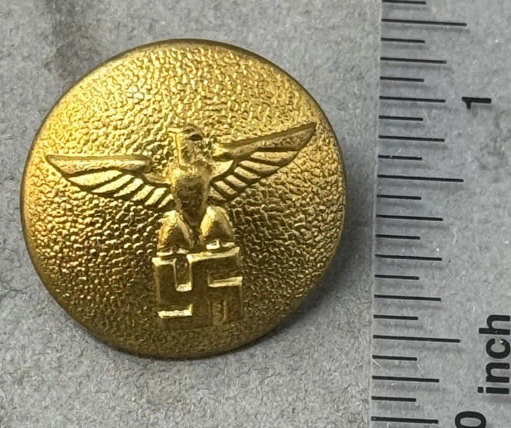 Original German NSDAP (Nazi Party) Political Uniform Button RZM Marked Certified By The Gettysburg Museum Of History. A two piece, die struck, steel based, gold gilded and gold washed NSDAP button. It depicts an early political style eagle with outstretched wings clutching a stagnant swastika in its talons, in front of a round pebbled backing. The reverse is “RZM M5/82” marked. It measures ¾ of an inch in diameter. In very good but used condition. Nice used example showing the expected but mild storage age and wear . 100% Guaranteed to be authentic Brought home by a U.S. solider as a trophy of war. Complete museum documentation (COA) Provided. Certified by The Gettysburg Museum of History. The Gettysburg Museum of History does not support or condone Adolf Hitler or the Nazi Party and is only offering this as a historic relic. Please see our other items. Also note when browsing our web site there are several pages of items, at the bottom of the list look for other page numbers. OUTSTANDING Scarce MAKER! Don’t Miss It!