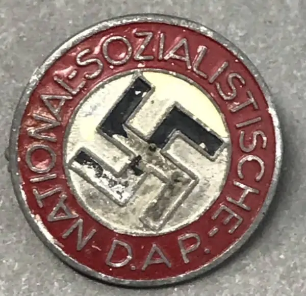 Original German NSDAP (Nazi) Party RZM Marked Membership Badge Certified By The Gettysburg Museum Of History. The NSDAP, Nationalsozialistische Deutsche Arbeiterpartei, (National Socialist German Worker’s Party), was originally founded in Munich as the DAP, Deutsche Arbeiterpartei, (German Worker’s Party), on January 5TH 1919. When Adolf Hitler joined the DAP in the autumn of 1919 he was to reform what was basically a debating society into an active political party. Appointed as the first chairman of the party on July 29TH 1921 Hitler was to restructure it along para-military lines in a hierarchy of four levels of government. Of Note: In late 1934 items manufactured for the NSKK, including membership pins, came under the quality control of the RZM, Reichzeugmeisterei, (National Equipment Quartermaster) and as a result were marked with the RZM logo when appropriate. A 24mm diameter, die struck zinc and painted NSDAP member’s badge. The badge features a red outer border, edged in silver, with the silver script, “National-Sozialistische-D.A.P.,” encompassing a white field with a black mobile swastika, also edged in silver. To the reverse a functioning pin back devise. RZM marked With maker code M1/108 For maker Schroder & Co., Lüdenscheid. In good condition. Nice used example showing the expected storage age and wear some paint loss. 100% Guaranteed to be authentic Brought home by a U.S. solider as a trophy of war. Complete museum documentation (COA) Provided. Certified by The Gettysburg Museum of History. The Gettysburg Museum of History does not support or condone Adolf Hitler or the Nazi Party and is only offering this as a historic relic. Please see our other items. Also note when browsing our web site there are several pages of items, at the bottom of the list look for other page numbers. Scarce Maker Don’t miss It!