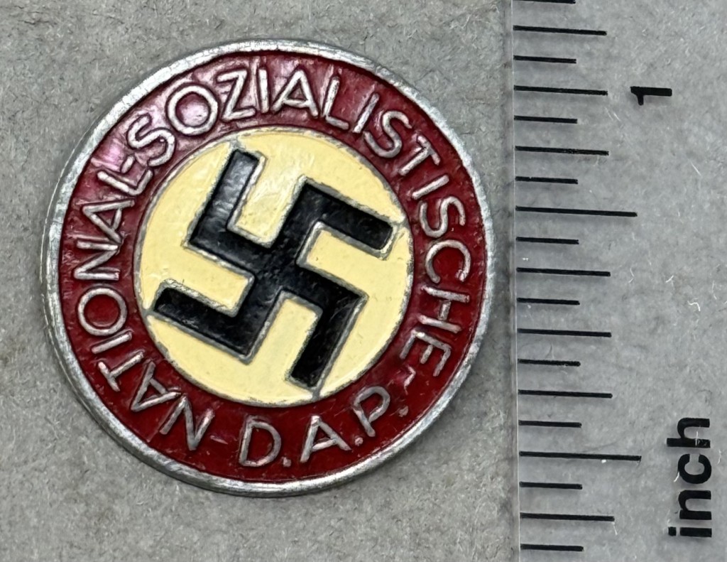 Original German NSDAP (Nazi) Party RZM Marked Membership Badge Certified By The Gettysburg Museum Of History. The NSDAP, Nationalsozialistische Deutsche Arbeiterpartei, (National Socialist German Worker’s Party), was originally founded in Munich as the DAP, Deutsche Arbeiterpartei, (German Worker’s Party), on January 5TH 1919. When Adolf Hitler joined the DAP in the autumn of 1919, he was to reform what was basically a debating society into an active political party. Appointed as the first chairman of the party on July 29TH 1921 Hitler was to restructure it along para-military lines in a hierarchy of four levels of government. Of Note: In late 1934 items manufactured for the NSKK, including membership pins, came under the quality control of the RZM, Reichzeugmeisterei, (National Equipment Quartermaster) and as a result were marked with the RZM logo when appropriate. A 24mm diameter, die struck zinc and painted NSDAP member’s badge. The badge features a red outer border, edged in silver, with the silver script, “National-Sozialistische-D.A.P.,” encompassing a white field with a black mobile swastika, also edged in silver. To the reverse a functioning pin back device. RZM marked In good condition. Nice used example showing the expected storage age and wear, (see photos). 100% Guaranteed to be authentic Complete museum documentation (COA) Provided. Certified by The Gettysburg Museum of History. The Gettysburg Museum of History does not support or condone Adolf Hitler or the Nazi Party and is only offering this as a historic relic. Please see our other items. Also note when browsing our web site there are several pages of items, at the bottom of the list look for other page numbers. RARE and Desirable Maker don’t miss it!