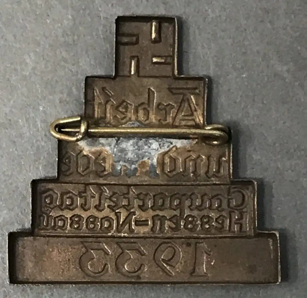 Original German NSDAP (NAZI PARTY) SA (BrownShirts) 1933 NSDAP “ARBEIT UND FRIEDE” GAUPARTEITAG HESSEN-NASSAU BADGE. (NSDAP Abzeichen) Certified
