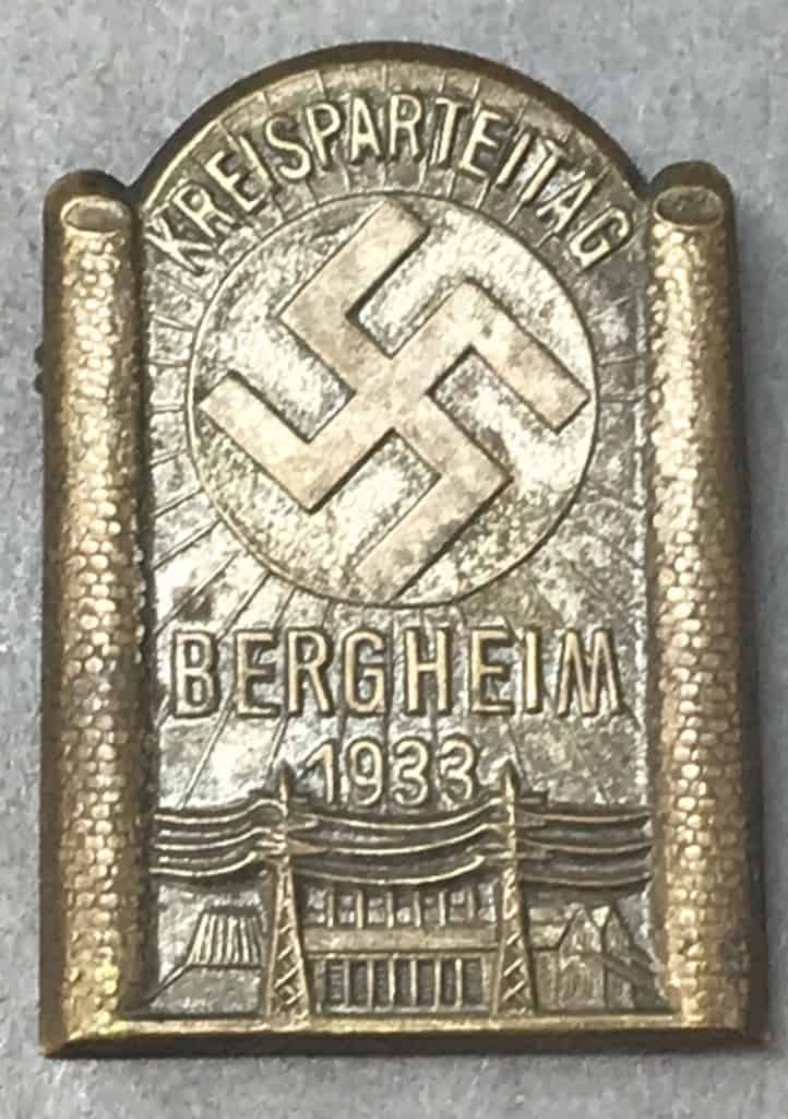 Original German NSDAP (NAZI PARTY) SA (BrownShirts) Kreisparteitag Bergheim 1933 Badge Certified