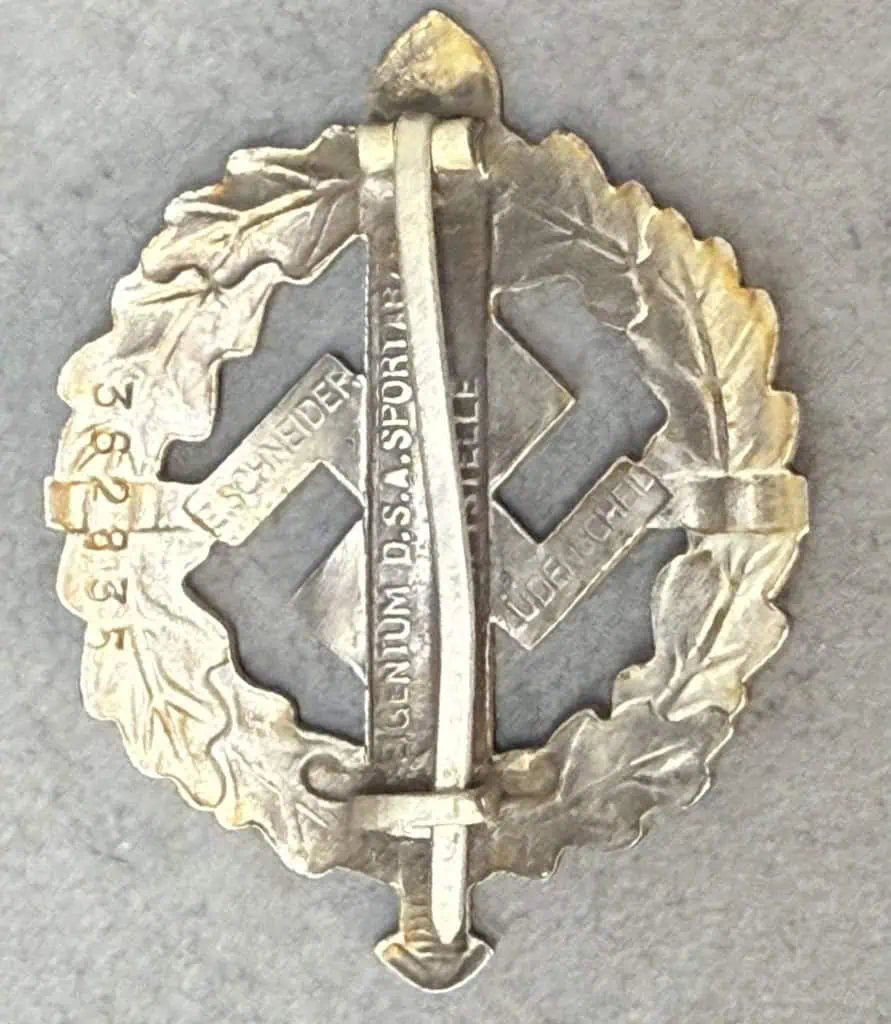 Original German NSDAP (NAZI PARTY) SA/SS Sports Badge In Bronze (SA-Sportabzeichen) Certified