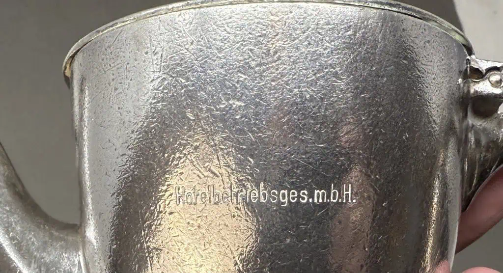 Original German NSDAP (Nazi Party) Silver Small Tea Pot Marked Hotelbetriebsges.m.b.H Brought Home By A U.S. Veteran Certified