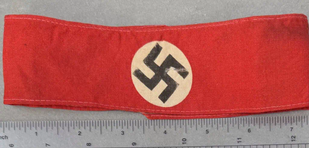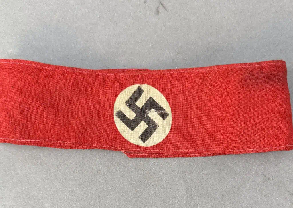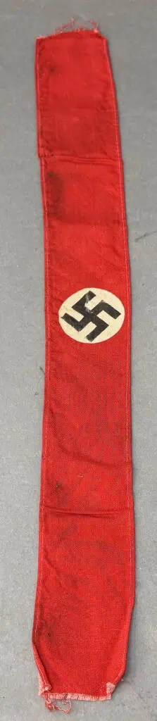 Original German NSDAP (Nazi Party) Partei-Bereitschaft” (party readiness) Armband Certified. NSDAP Partei-Bereitschaft Armband light weight, printed cotton construction. Armband features a red base field with printed, central, white circular field with printed, black, canted swastika to center. White circular field and swastika. This is an un-stamped version and is much like a regular Nazi arm band only a bit thinner. NSDAP Partei-Bereitschaft Armband was worn by party members when performing assorted operational duties. 100% Guaranteed to be authentic. Complete museum documentation (COA) Provided. Certified by The Gettysburg Museum of History. The Gettysburg Museum of History does not support or condone Adolf Hitler or the Nazi Party and is only offering this as a historic relic. Please see our other items. Also note when browsing our web site there are several pages of items, at the bottom of the list look for other page numbers. RARE! Much More Rare Than Standard Armbands! (see photos) Good used condition.