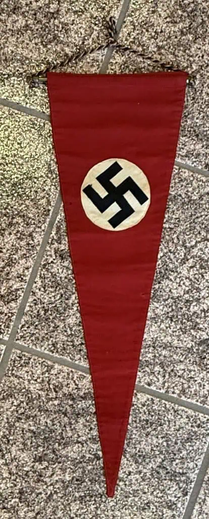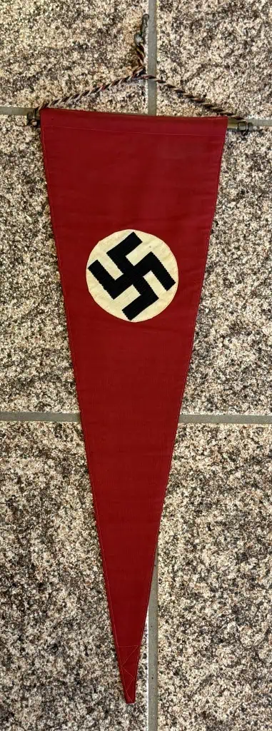 Original HIGH QUALITY VERY EARLY THIRD REICH Era German NSDAP (Nazi Party) Cloth Pennant Type Flag Brought Home By A U.S. Veteran Certified