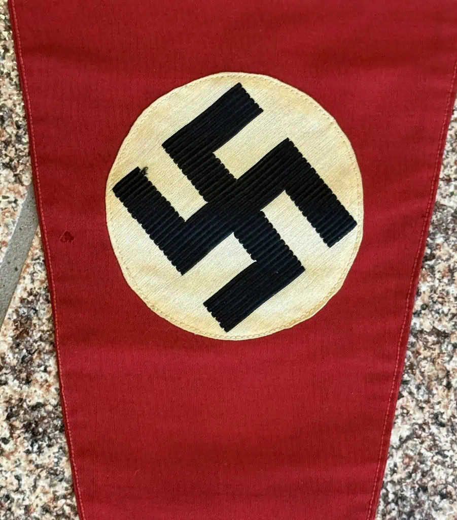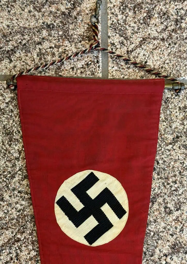 Original HIGH QUALITY VERY EARLY THIRD REICH Era German NSDAP (Nazi Party) Cloth Pennant Type Flag Brought Home By A U.S. Veteran Certified