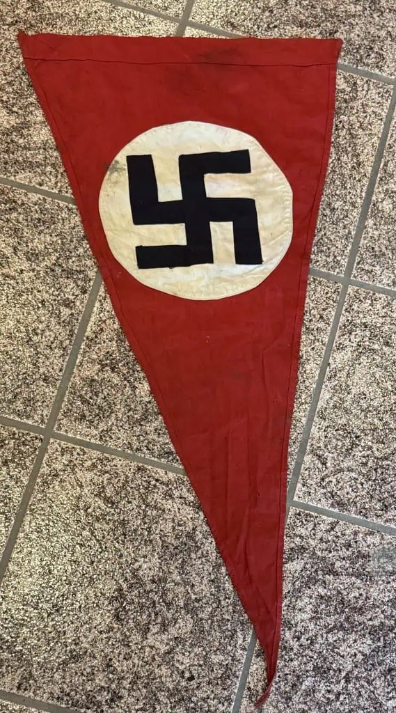 Original LARGE HIGH QUALITY WWII Era German NSDAP (Nazi Party) Cloth Pennant Type Flag Brought Home By A U.S. Veteran Certified