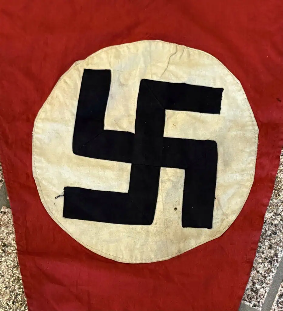 Original LARGE HIGH QUALITY WWII Era German NSDAP (Nazi Party) Cloth Pennant Type Flag Brought Home By A U.S. Veteran Certified