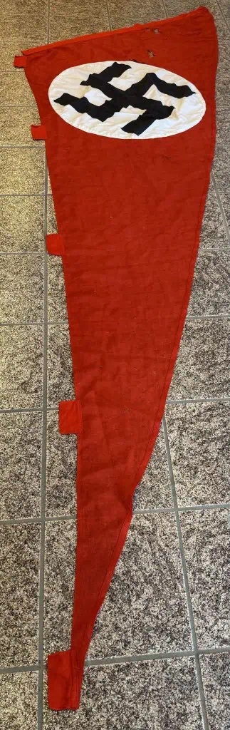 Original LARGE HIGH QUALITY WWII Era German NSDAP (Nazi Party) Cloth Pennant Type Flag Brought Home By A U.S. Veteran Certified