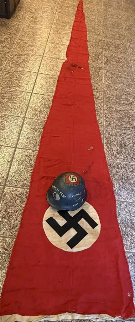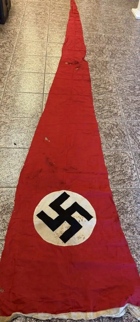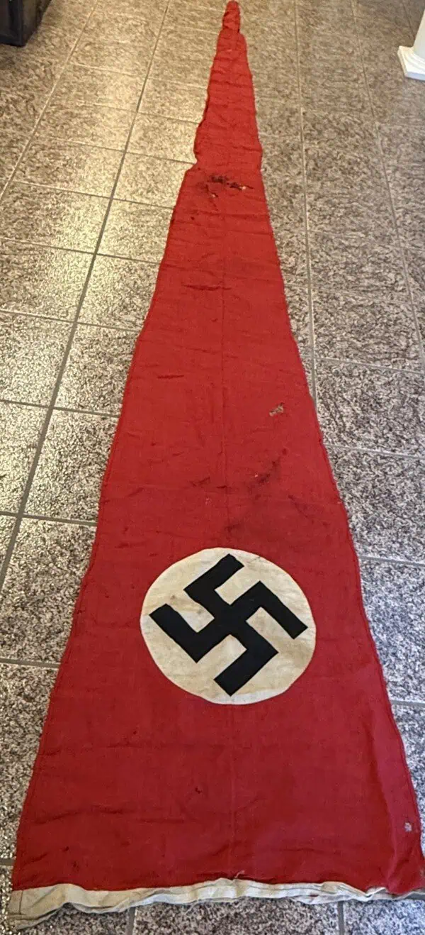 Original LARGE HIGH QUALITY WWII Era German NSDAP (Nazi Party) Cloth Pennant Type Flag Brought Home By A U.S. Veteran Certified