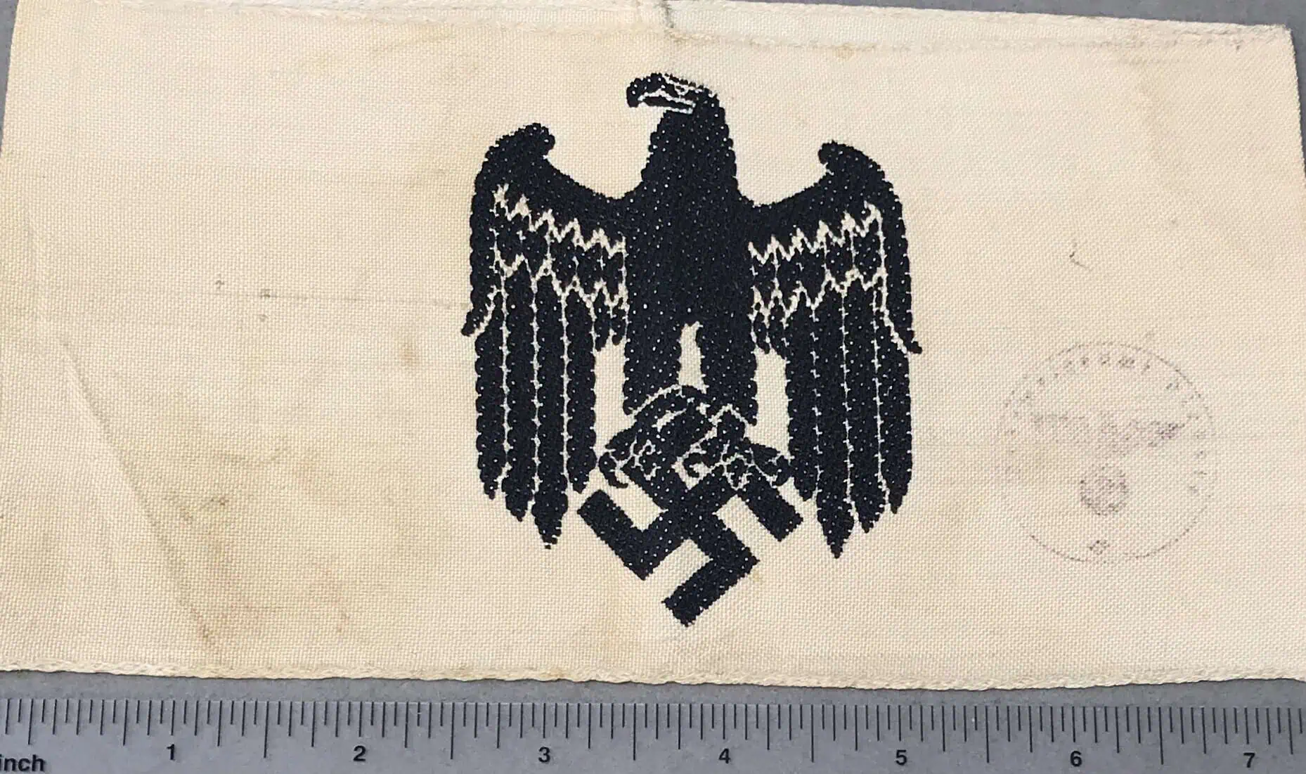 Original WWII Era German NSDAP (Nazi Party) Cloth Wall Pennant Type Flag With metal Hooks Brought Home By A U.S. Veteran Certified. Utilized by pretty much by all the organization of the Third Reich in one form or another. The swastika, (a Sanskrit word meaning “well-being”), is an ancient symbol that was utilized in numerous diverse cultures and signified both the cycle of life and the sun. The swastika was also a Nordic rune and the pagan Germanic symbol for Thor, God of Adventurers. In good condition HIGH QUALITY DOUBLE sided 18″/37″ high quality cotton bunting style material with separate sewn white disk and screened swastika. With Red White And Black Twist Rope Hanger and a metal hook. A fantastic piece of WWII history. In good condition with very minor storage wear no fading a few pin holes (see photos).. This flag is a high-quality version. These are a better quality that the last parade ones we had and larger with reinforced edges. Even with the minor condition issues it Overall a very collectible flag with lots of history Nice used example showing the expected age and wear. 100% Guaranteed to be authentic Brought home by a solider as a trophy of war. A very displayable size in good condition an outstanding example. Complete museum documentation (COA) Provided. Certified by The Gettysburg Museum of History. The Gettysburg Museum of History does not support or condone Adolf Hitler or the Nazi Party and is only offering this as a historic relic. Please see our other items. Also note when browsing our web site there are several pages of items, at the bottom of the list look for other page numbers. RARE EARLY PIECE Don’t miss it!