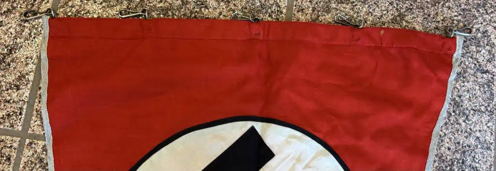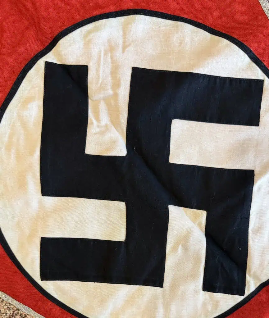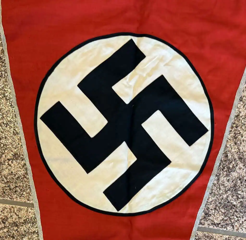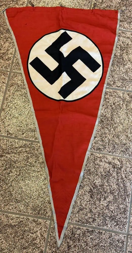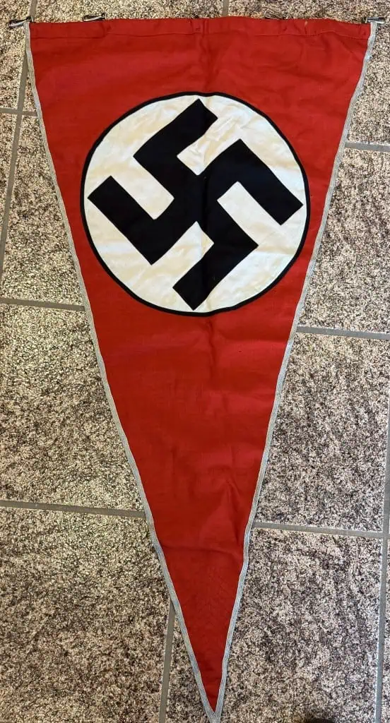 Original LARGE Third Reich Era German NSDAP (Nazi Party) Very High Quality Cloth Pennant Type Flag With Metal Hooks Certified