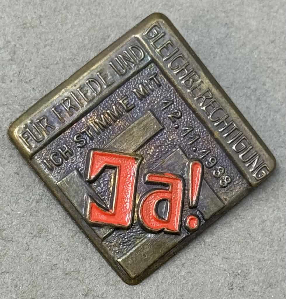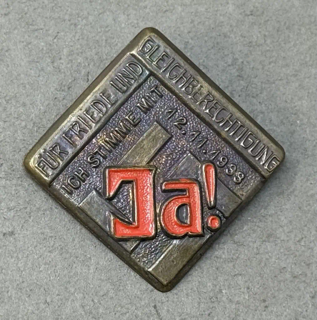 Original Mega Rare German Adolf Hitler 1933 Election “JA” (YES) For Hitler Badge Certified